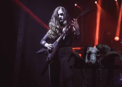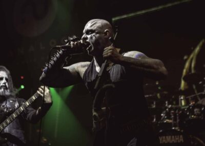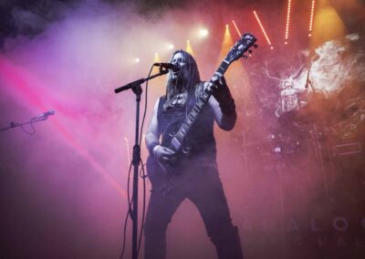 A Necroratory bulijára már befészkeltem magam a küzdőtér legközepébe, ahonnan a legjobban tudtam magamba szívni a mindenféle kecskefejek meg black metalos karperecek által is tolmácsolt „sátán”hangulatot. Én maradtam a helyemen, ellentétben a több irányból hallatszó „Az csaj? Előremegyünk, megnézzük, hogy az csaj-e” felszólalókkal. 🙂 Bizony, még mindig kuriózum, ha a metalban egy csaj pengeti a gitárt (egyébként kinézetre egyértelmű volt, hogy nő, csak ugye az ember kicsit hitetlenkedik, amikor a black darálást nőnemű tolja)… A banda egyértelműen nem a tagsággal akarja eladni a produkciót – a zene magáért beszél. Nem vagyok egy hatalmas black fan, de még úgyis nagyon bejött a koncert, a csapat csupa olyan dalokat játszott, amiket mindenképp meg fogok hallgatni később is. A show nem volt semmi különleges, a hangszerszekció egyen headbangel, míg a kopasz, kifestett énekes pont annyit kommunikál a közönséggel, amennyit egy ilyen koncert alatt kell – miközben a banda top fanjai teli torokból éneklik az amúgy nagyon hangulatos, magyarnyelvű szövegeket. A koncert fun-factorát a mindenkit nagyon jól elszórakoztató Blegh! és Weh! felkiáltások adták, amiket a frontember a legjobb pillanatokban vágott be az egyre sűrűsödő sorok közé.
