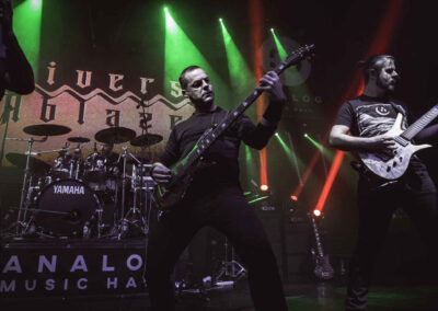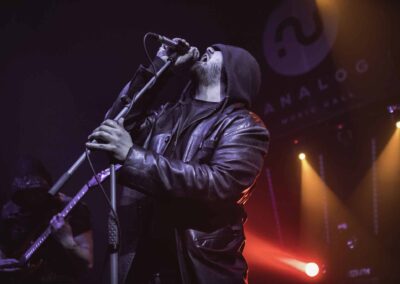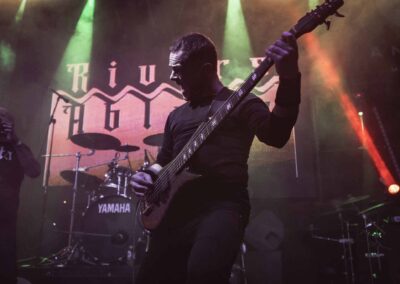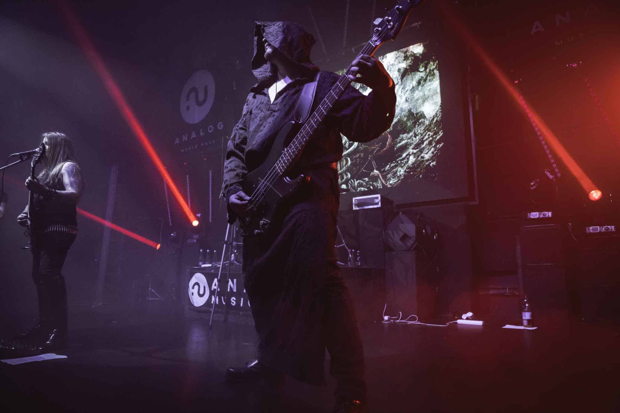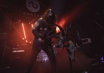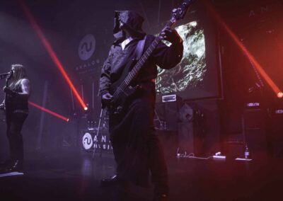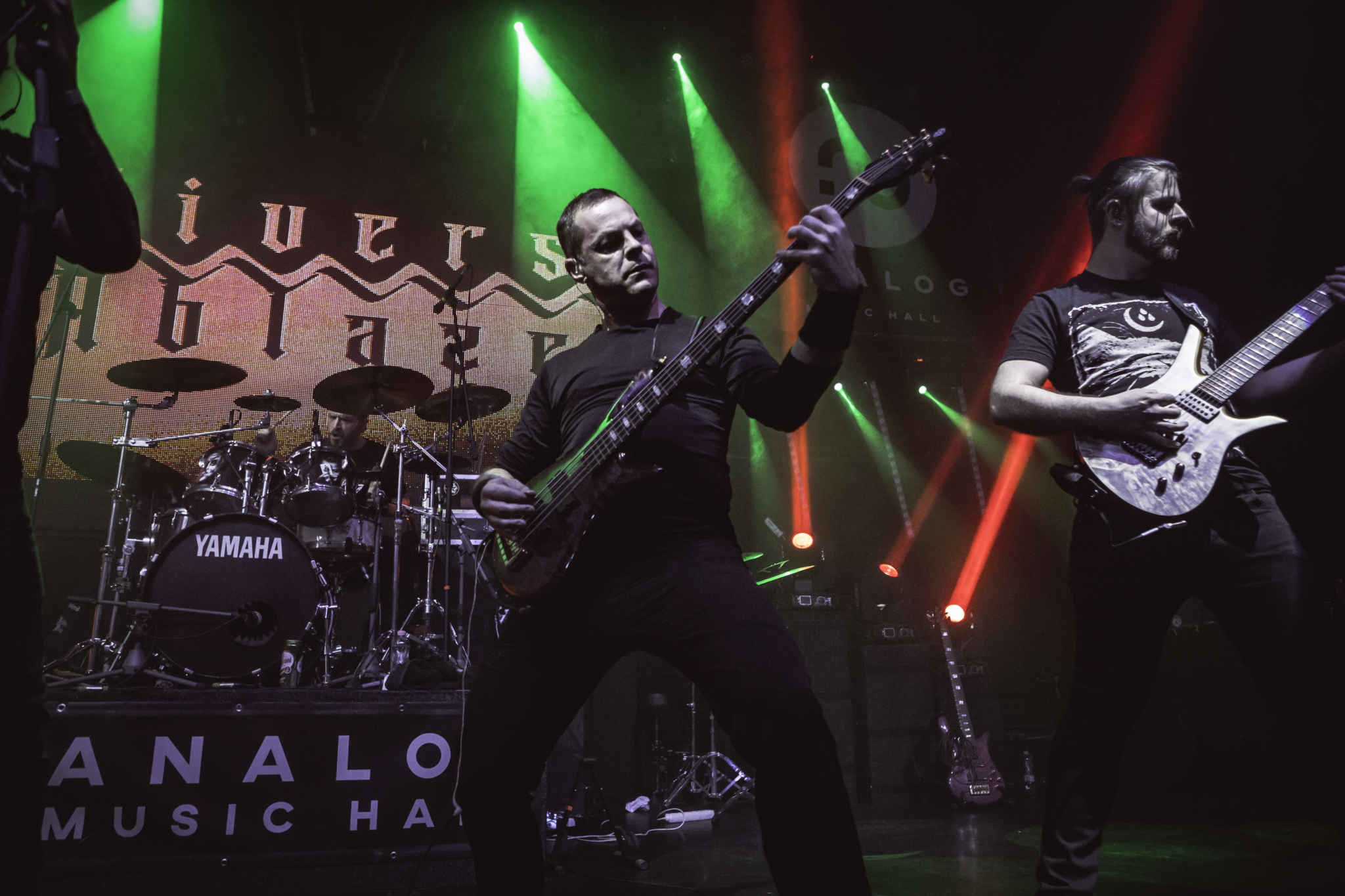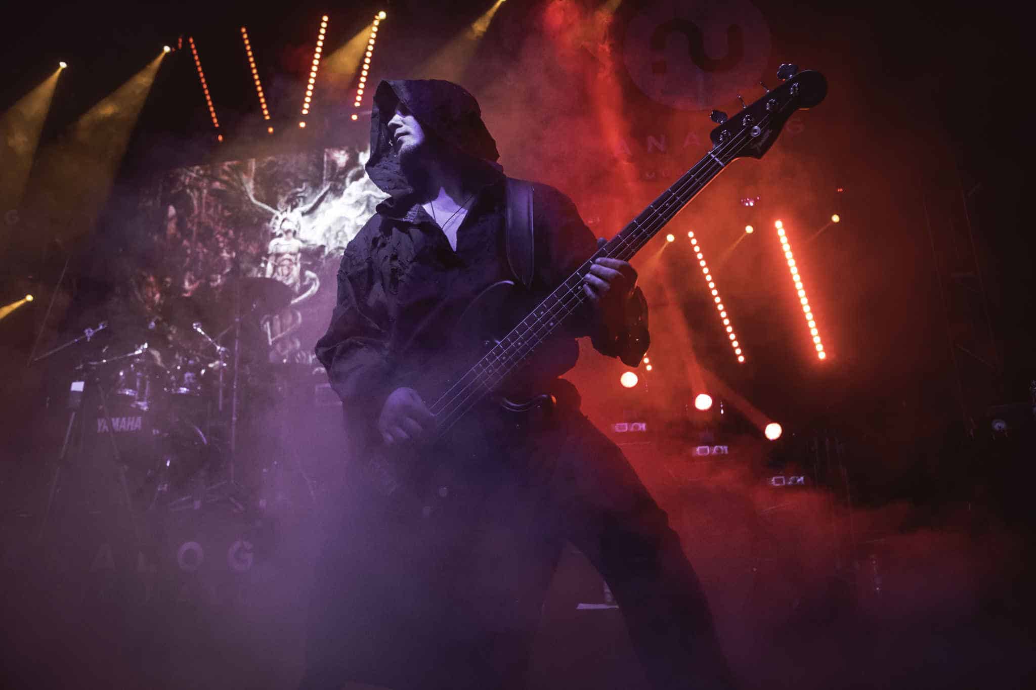 A Rivers Ablaze immáron koncertképes szupegrouppá fejlődött, és nem lehetett őket nem megnézni – az egyszerű logóval és piros fényvilággal életre kelő színpad mindenkit az experimentális, sokszor progresszív, blackes deathes hangkavalkádra engedett fókuszálni. Alapvetően ez a csapat legújabb albumának, a The Black Hole Era-nak a lemezbemutatója volt, de a setlistet megvariálták korábbi dalokkal is, köztük az instrumentális albumról származóval is (amikoris az énekes megszólalt, hogy „Most levonulok, mert így is túl sokat vagyok a színpadon feleslegesen”). Jó volt ez a kis humorfaktor – annak ellenére, hogy a dalok elég kemények és komorak, a srácok nem veszik magukat túlságosan komolyan, ami mindig szuper. Ugyanígy a közönség sem – elöl két fiatal úgy táncolt, mintha egy egész más koncerten lett volna, de nem baj, élvezze mindenki úgy, ahogy maga szeretné. Nekünk maradt a komor headbangelés, vigyázbanállás, a hangszeres játékra történő odafigyelés – ez a zene akkor üt, ha odafigyelsz a mindenféle apró részletekre, és szerencsére az Analóg nagytermének színpada úgy szólt kifele az egész este során, hogy ez simán lehetséges volt. Nagyon kíváncsi vagyok, merre fogja az út vinni ezt a zenekart így, hogy kibővültek profibbnál profibb, sokat látott zenészekkel. Én nagyon szurkolok, mert a szerzeményeik zseniálisak.
