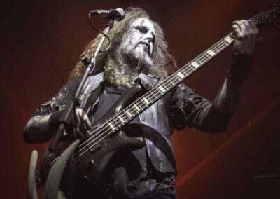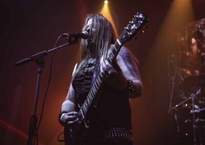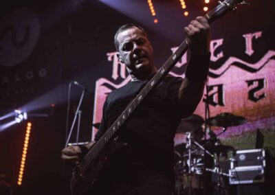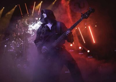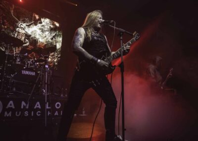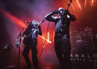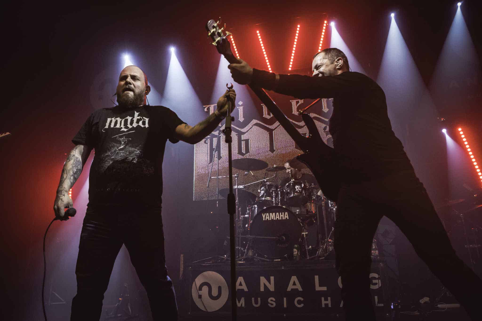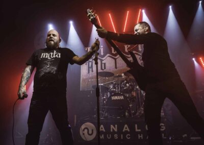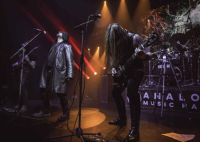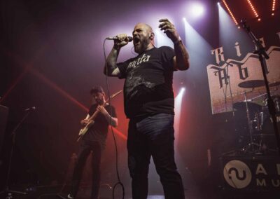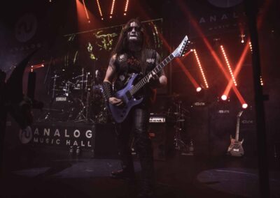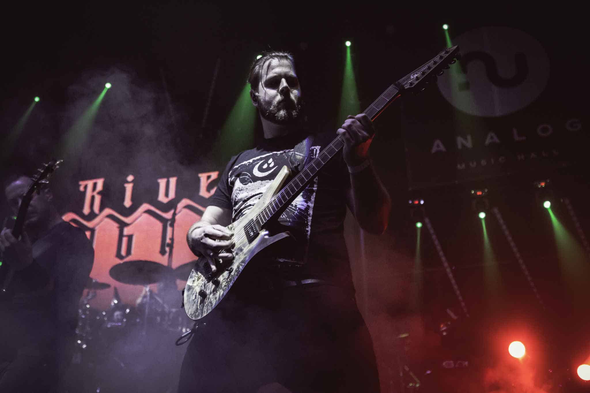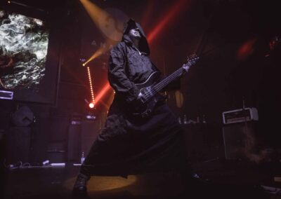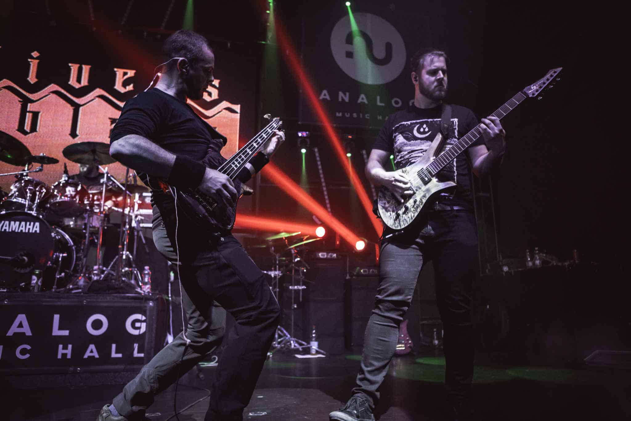 A Rivers Ablaze immáron koncertképes szupegrouppá fejlődött, és nem lehetett őket nem megnézni – az egyszerű logóval és piros fényvilággal életre kelő színpad mindenkit az experimentális, sokszor progresszív, blackes deathes hangkavalkádra engedett fókuszálni. Alapvetően ez a csapat legújabb albumának, a The Black Hole Era-nak a lemezbemutatója volt, de a setlistet megvariálták korábbi dalokkal is, köztük az instrumentális albumról származóval is (amikoris az énekes megszólalt, hogy „Most levonulok, mert így is túl sokat vagyok a színpadon feleslegesen”). Jó volt ez a kis humorfaktor – annak ellenére, hogy a dalok elég kemények és komorak, a srácok nem veszik magukat túlságosan komolyan, ami mindig szuper. Ugyanígy a közönség sem – elöl két fiatal úgy táncolt, mintha egy egész más koncerten lett volna, de nem baj, élvezze mindenki úgy, ahogy maga szeretné. Nekünk maradt a komor headbangelés, vigyázbanállás, a hangszeres játékra történő odafigyelés – ez a zene akkor üt, ha odafigyelsz a mindenféle apró részletekre, és szerencsére az Analóg nagytermének színpada úgy szólt kifele az egész este során, hogy ez simán lehetséges volt. Nagyon kíváncsi vagyok, merre fogja az út vinni ezt a zenekart így, hogy kibővültek profibbnál profibb, sokat látott zenészekkel. Én nagyon szurkolok, mert a szerzeményeik zseniálisak.
