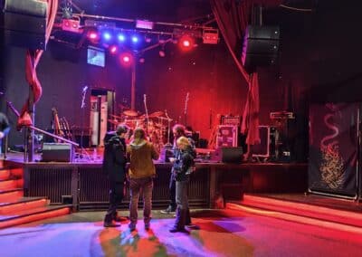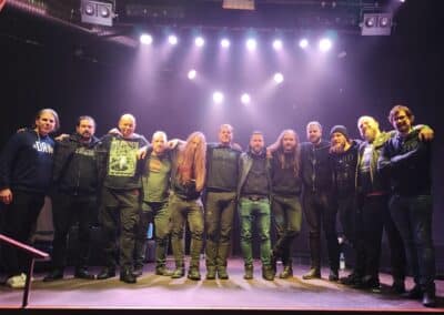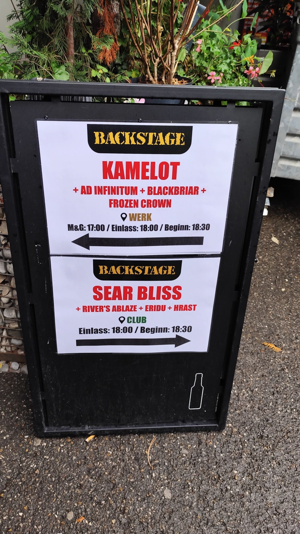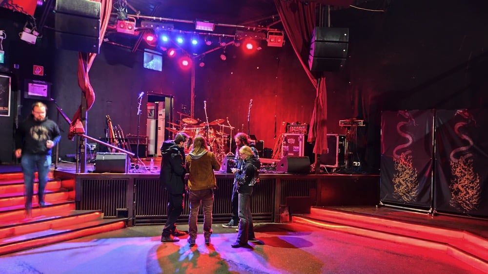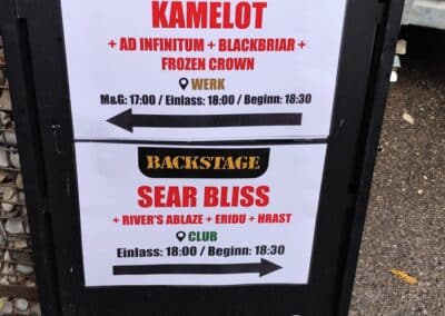 Írnám azt, amit eddig kb. mindig, hogy eseménytelenül telt az út Münchenig, de ez szerencsére nem lenne igaz. Történt ugyanis, hogy a Bohemyst énekese, Radek összekukázta az ott felejtett molinónkat Ceske Budejovicében, és átadta egy barátjának, aki a München felé épp útba eső Wels mellett dolgozik. Vasárnap lévén, el is rejtette egy ipartelepen egy számzáras fém konténerbe, amit legnagyobb meglepetésünkre simán megtaláltunk, benne a szajréval. Ennek annyira megörültünk, hogy a molinó visszaszerzéséről még egy videót is készítettünk, a darkweben még mindig elérhető. A Backstage Klub egy három teremből álló komplexum, ezúttal a legkisebb teremben jutott nekünk hely. Ideje volt, mert eddig mindig csak a közepes, ill. a nagyteremben játszottunk. Mikor beléptünk, kicsit elszomorodtunk, mert hiába volt a sok hűhó, a színpad kialakítása miatt a molinót nem tudtuk kitenni, csak a két keretes dekort oldalra. De ennyi baj legyen! Michael barátunk, a koncert szervezője régóta lelkes támogatója a Sear Bliss-nek, igen fasza gyerek, most is nagyon kitett magáért. A beállás után megrohantuk a catering szekciót, és immár sokadjára tömtük magunkat tele. A Backstage-ben minden egyéb mellett az ellátás is mindig elsőosztályú. Vozinak van egy furcsa szokása, állítása szerint ha jóllakott, akkor tüsszög. Nos, Münchenben a 10 nap alatt sokadjára hallgathattuk meg az épp aktuális tüsszentőrohamot, szóval elégedetten nyugtáztuk, hogy gitárosunk bőségesen falatozott a sült csirkecombból. Ezen az estén további két zenekar csatlakozott hozzánk, név szerint a Hrast és az Eridu. Utóbbi zenekar keleties témákat is szőtt a black metal alapú zenéjébe, és műsorukat egy csinos hastáncos hölgy műsora is színesítette. Hollandiától eltérően itt nem divat a vasárnapi koncerteket matiné jelleggel korai időpontra szervezni, ezért kicsit tartottunk is a dologtól, de félelmünk alaptalannak bizonyult. A megjelent több mint 100 ember láthatóan és hallhatóan jól szórakozott, és becsülettel megvárták a műsor végét, pedig addigra már éjfél körül járt az idő. Nagy örömünkre itt is találkoztunk magyarokkal, és volt olyan is, aki Erfurtban látott minket, és mivel tetszett neki a műsorunk, a távolság ellenére ide is eljött. Ő kifejezetten örült, hogy a két koncert setlistje eltérő volt. Már csak ezért is megéri variálni a műsoron. A koncert után megcsináltuk az ilyenkor szokásos turnézáró fotót a színpadon, majd rövid búcsúzkodás után Riversék útnak is indultak Budapest felé. Mi a klub területén lévő szálláson hajtottuk álomra fejünket, de még mielőtt ez megtörtént volna, elzarándokoltunk a catering részlegre, és a biztonság kedvéért még búcsúzóul magunkba gyűrtünk pár csirkecombot, elvégre ahogy a népi bölcsesség tartja, ki mint eszi szárnyát, úgy alussza álmát