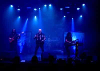 Szóval az estét a Sadist kezdte, meglehetősen hézagos – tulajdonképpen pár tucat fős – hallgatóság előtt. Ez a második magyarországi fellépésük volt, előzőleg – emlékszik rá valaki? – a fantasztikus csillebérci Metalfest-en láthattuk őket. Nem voltak emlékeim a tizenöt évvel ezelőtti bulijukról, és lehet, hogy rettenetesen részrehajló vagyok, de véleményem szerint most a teljes produkciót tulajdonképpen Tommy vitte el a hátán. Elég sok kiemelkedő zenei teljesítményt lehetett már látni ezeken a deszkákon, de hogy valaki konkrétan egyszerre gitározom és billentyűzzön – ráadásul mindezt fantasztikus szólókkal vegyítve –, nos, ilyen látványhoz és zenéhez azért meglehetősen ritkán van szerencsénk. Lehet, hogy csak a korai óráig okán, de a Sadist zenéje most valahogy nem jött át, és nem váltotta ki ezt az elementáris hatást, amit a konzervanyag hallgatása során nyújtott. Igazából alapvetően ez a zene sem ugrálásra lett tervezve, hiszen az időnket meg-megtörő ütemek tulajdonképpen lehetetlenné teszik a zenei élvezet ezen módját – ezzel együtt is túlzás lenne azt mondani, hogy csalódást okozott a fellépésük (Respirium, Something to Pierce, Accabadora, Sometimes They Come Back, Escogido, India, Season in Silence, The Attic and the World of Emotions, Tribe). Véleményem szerint egy nagyon korrektül összerakott, példaértékű szakmunkához volt szerencsénk, de igazából az a fűszer, az a csemege, amire az ember ilyenkor egy kiadósat csettint… na ez hiányzott valahogy.