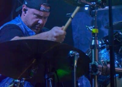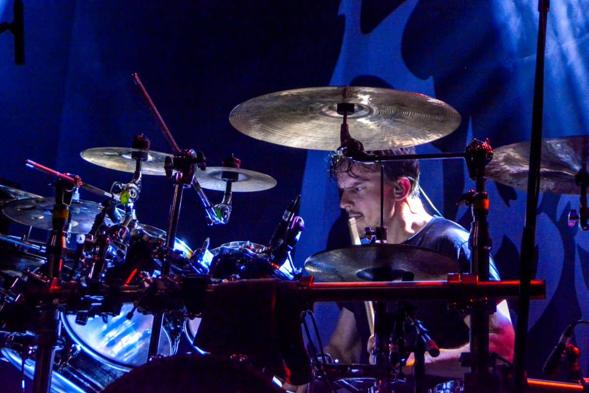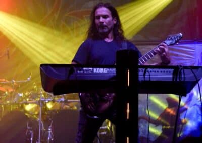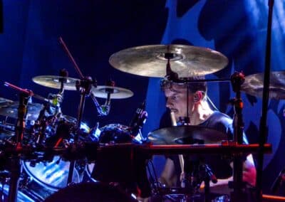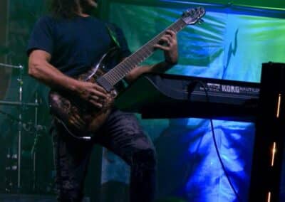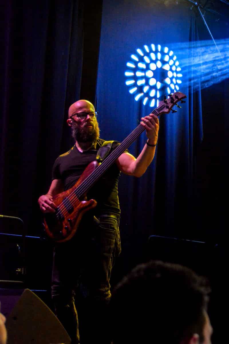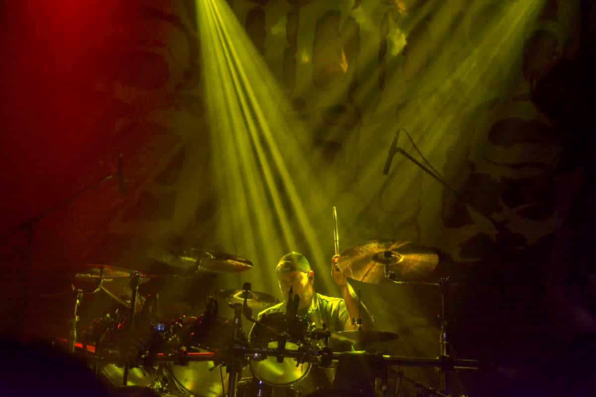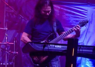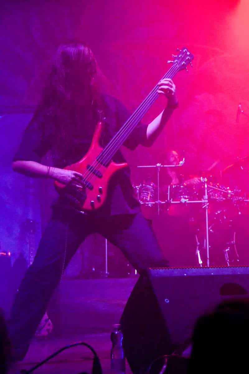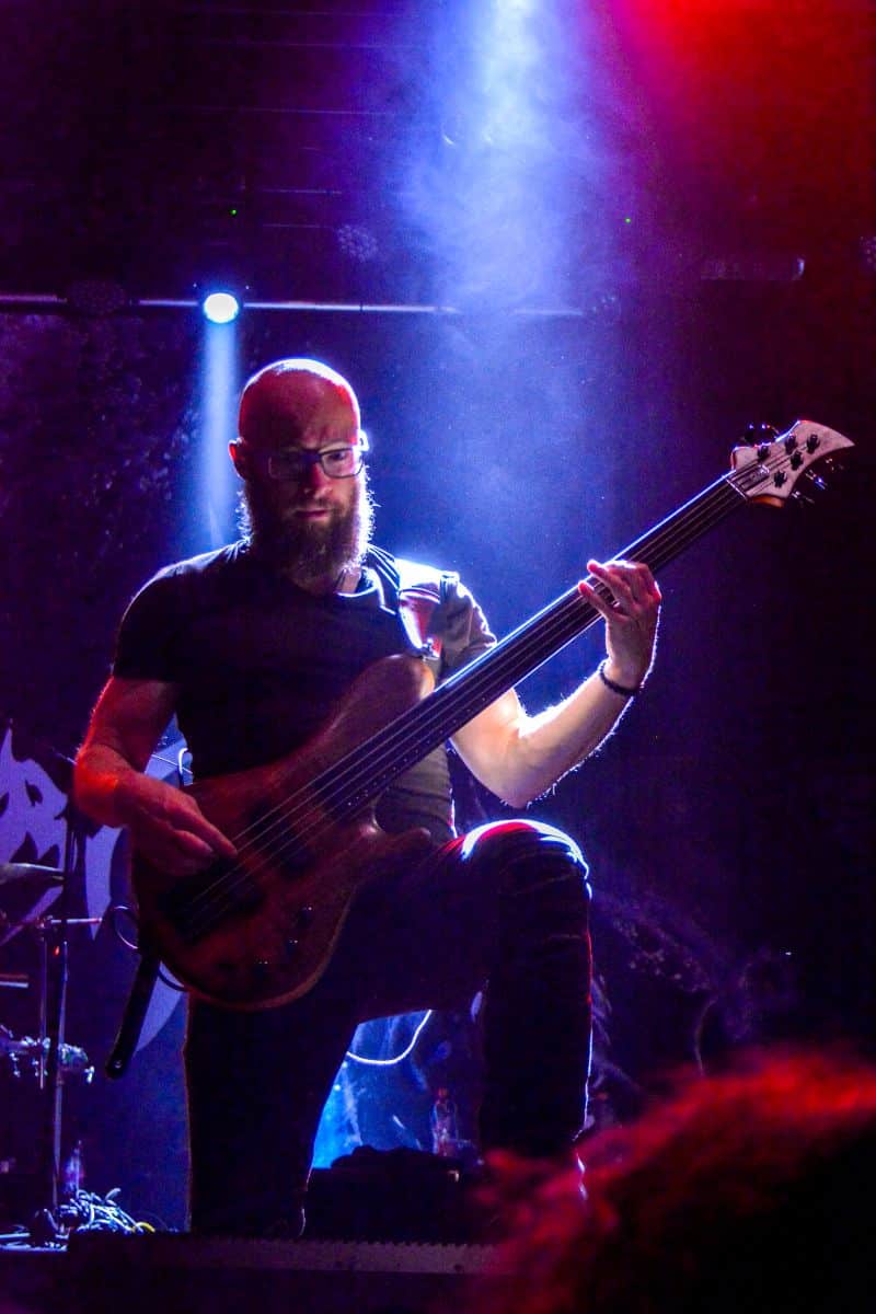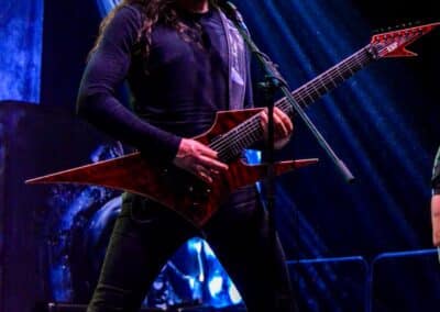 Átszerelés, és következett az est fénypontja, az Obscura. Lendületes nyitás – úgy, ahogy az Steffen-től megszoktuk –, és beindult a buli. A színpadon egy vérprofi gépezet működött, és maga az előadás tökéletesen ötvözte az élő fellépések erejét-dinamikáját-lendületét a felvételek komplexitásával és tisztaságával. Ugye most láttuk először az Obscura teljesen új konfigurációját, és amit ez a kvartett a színpadon művelt, azzal teljesen levett a lábamról. A zenekar szólógitárosa, Kevin Olasz – ne tévesszen meg senkit a vezetékneve, nincsenek magyar felmenői, legalábbis ő ragaszkodott ehhez a verzióhoz – egészen elképesztő dolgokat játszott egészen hajmeresztő technikával. Az extrém metal gitárzenéje és játéktechnikája nagyon sokat fejlődött az utóbbi évtizedek során: megjelent még ezer éve a tapping-elés, megjelent a hibrid pengetés is, de hogy valaki ezt a két eszközt egyszerre használja szólózás során, na, ez számomra újdonság volt. Német barátunk hihetetlen átéléssel játszott, tényleg élvezte azt, amit csinál, és közben mindennel foglalkozott, csak azzal nem, hogy az ujjai alól hogyan folynak ki a zeneileg is és technikailag is csodálatraméltó szólók. Tökéletes párost alkottak Steffen-nel, akinek a szerepe leginkább az ének és a kísérlet volt, bár egy pár bonyolultabb kiállás megvalósítását is magára vállalta. Érdekes volt nézni a pengetési technikáját, különösen a Suicidal Angels működése után: a görögök még az egészen extrémen gyors részeket is downstroke (csak lefelé) pengették – ehhez képest Steffen az Obscura skáláján közepesen gyorsnak minősülő részeket is váltott pengetéssel játszotta.