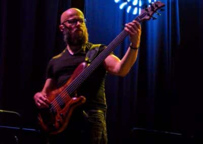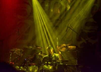Nagyon kíváncsi voltam Robin Zielhorst basszuskíséretére. A fretless basszusgitár egészen speciális hangszínnel bír, amivel egy teljesen egyedi ízt ad a zenének – ennek tükrében kíváncsi voltam, hogy a hang lágysága nem gyengíti-e a zene erejét, nem lesz-e tőle esetleg kevésbé ütős a muzsika. Örömmel jelentem, hogy ilyen veszély nem fenyegetett: amikor a fretless hangszer lágy hangjára volt szükség, akkor az tökéletesen kiemelkedett a hangszerek közül, amikor viszont a döngölésre volt igény, akkor a basszuskíséret maga tökéletesen hallatszott, ám a bund nélküli gitár puhasága nélkül. Nem lehetett teljes a zenekar és a fellépés a kísérletet adó erőmű nélkül: fiatal bajszos barátunk, James Stewart, nemcsak hogy hibátlanul hozta az Obscura slágereit, de jól hallhatóan még 5-10 százalékkal föl is gyorsította őket – szerencsére nem annyira, hogy az már zavaró legyen. Nem lemezbemutató turné volt: a régebbi vagy fontosabb dolog közé tűzdelve bújtak el az új album balladái (Forsaken, Silver Linings, Evenfall, Emergent Evolution, In Solitude, Devoured Usurper, Akróasis, The Sun Eater, The Anticosmic Overload, When Stars Collide, Septuagint). Steffen elmondása alapján az új anyag fogadtatása – kivétel nélkül minden album esetén – vegyes: van, aki imádja, és van, aki ki sem állhatja, így szerintem adta magát az a logikus döntés, hogy akkor minden anyagról legyen egy pár tétel, így mindenki megtalálja a magának kedveset. Nem sok idejük volt: 55 perc után Steffen már az utolsó dalt konferálta fel; mondjuk azt lehetett tudni, hogy ennyire gyorsan azért nem fognak meglépni, de egy ráadást követően tényleg véget ért a buli. A hallgatóság jórészt szétszéledt, a türelmesebbek még fotózkodtak a ki-kijövő zenészekkel… aztán lassan véget ért ez az este is.