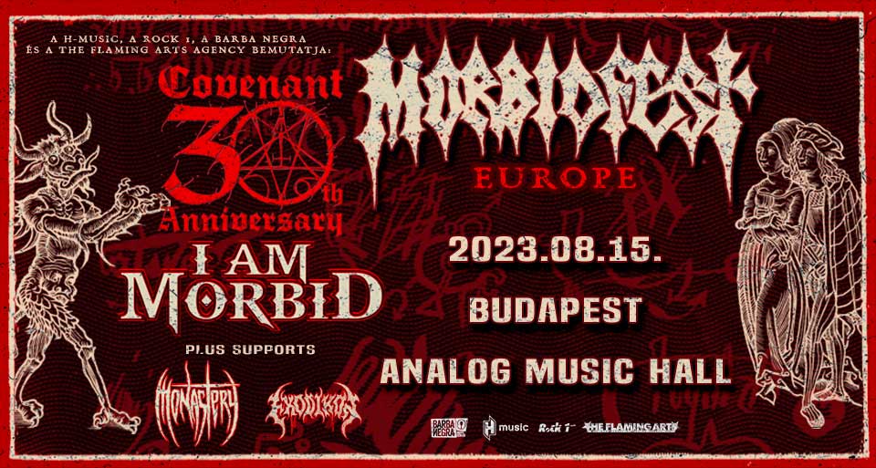 Augusztus elején indul útjára az ex-Morbid Angel tagokat felvonultató I Am Morbid nevezetű project turnéja, melyben két eredeti tag, nevezetesen David Vincent és Pete Sandoval ápolja a klasszikus death metal himnuszok örökségét. A két legenda mellett Bill Hudson és Richie Brown fogja reszelni a húrokat. A Covenant 30! körút pedig mindenképpen egy különleges eseménynek ígérkezik, hiszen a Morbid Angel 1993-ban megjelent nagylemeze egy igazi mérföldkőnek számít a zenekar és úgy alapjaiban véve a death metal színtér történetében.