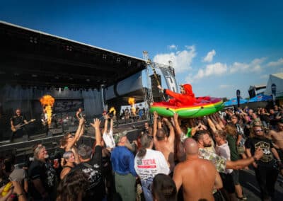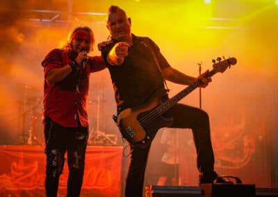 A The Toy Dolls volt a második nap fő produkciója. Az angol happy-punk trió szórakoztató jelenség, sőt, én amondó vagyok, hogy nagyobb hangsúlyt fektetnek a bohóckodásra, mint a zenélésre. Igen, ez a zenekar valószínűleg erről szól. Plusz ugyebár punk, ami sosem a virtuozitásáról vagy az elmélyülős balladáiról volt híres. Így a The Toy Dolls koncertje inkább hajazott egy cirkuszi előadásra. Színes hajaik és napszemüvegeik, a gitárpörgetős mutatványok, és az, hogy Michael Algar énekes még napszemüvegeket is dobált a közönségnek, felfogható egy kis frissítő „kikapcsolódásnak”, kiszakadásnak a zúzós metal- és rockzenekarok energiái közül.