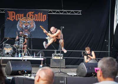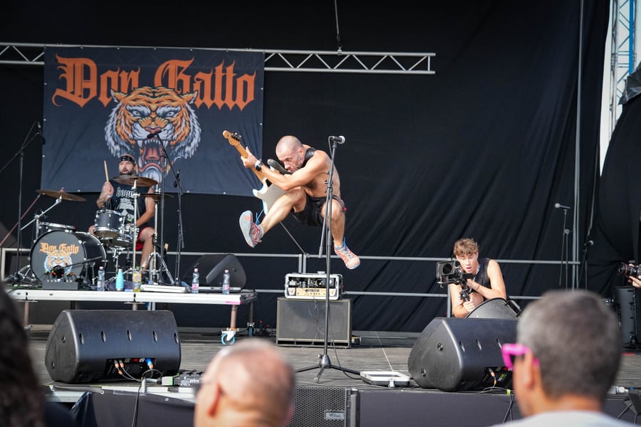 A Don Gatto a csütörtöki nap első fellépőjeként lépett színpadra, így a nem túl hálás 15:30-as idősávban kellett játszaniuk a hétágra sütő napon. Ennek ellenére a rettenthetetlen rajongóik szép számban megjelentek a színpad előtt, és a folyamatosan konferáló Acélos Balázs gitáros nem is győzte kifejezni ez iránti értetlenségét. Szerintem egy ponton már túl is tolta ezeket a „hát ti biztosan fizetett közönség vagytok, nem hiszek nektek, csak szórakoztok velünk” jellegű dumákat, de hát a közönség biztos vevő erre a fajta csipkelődésre.
