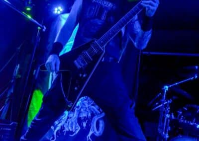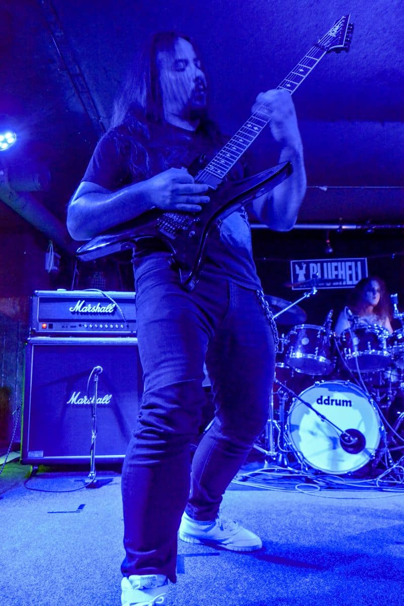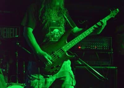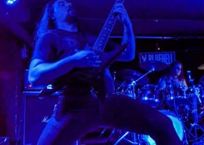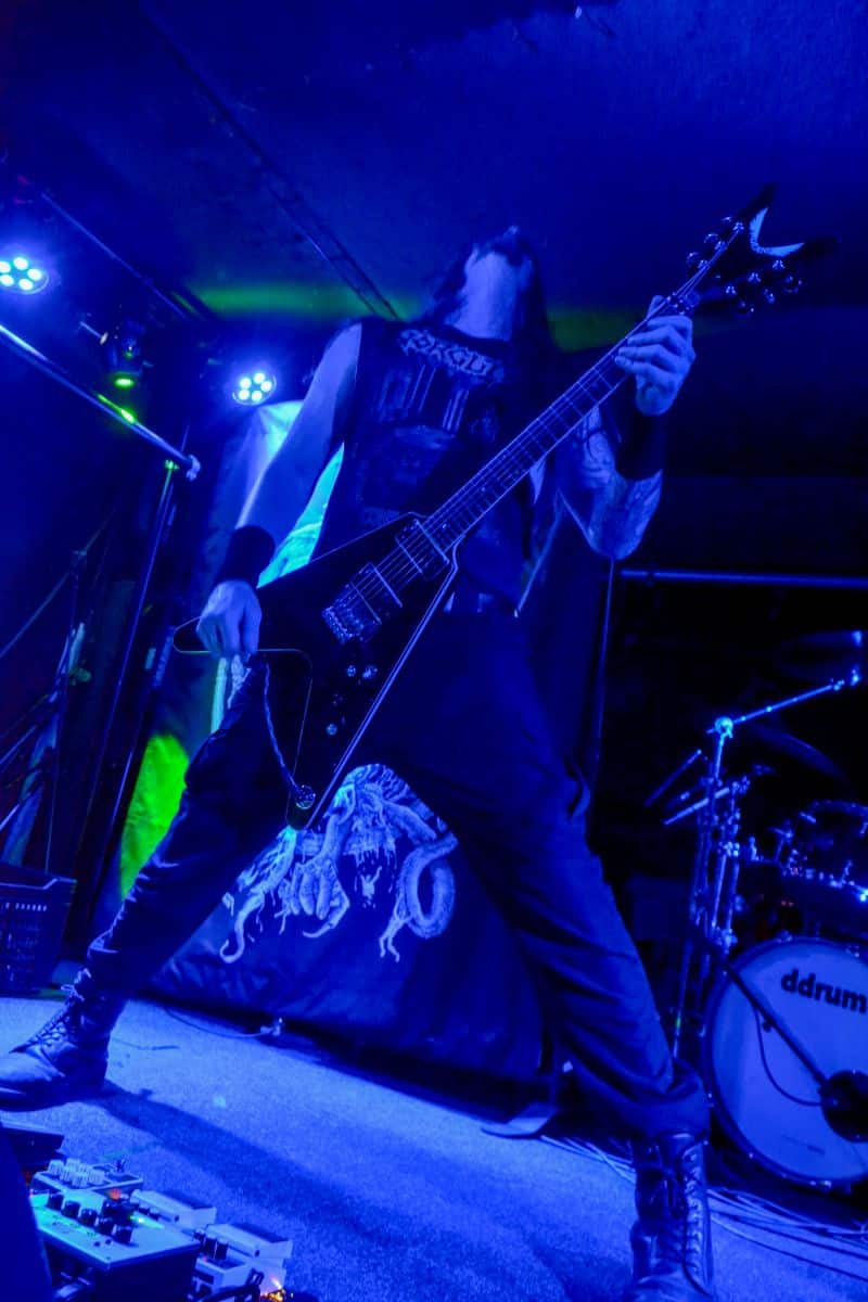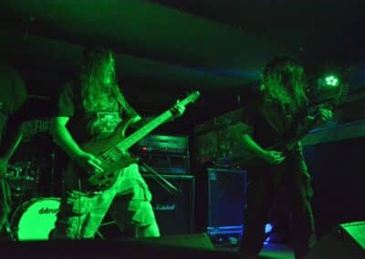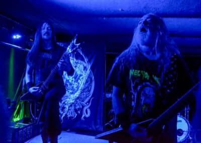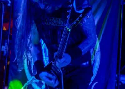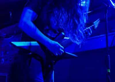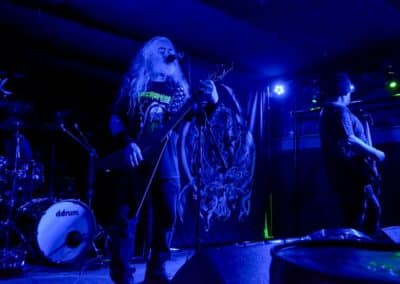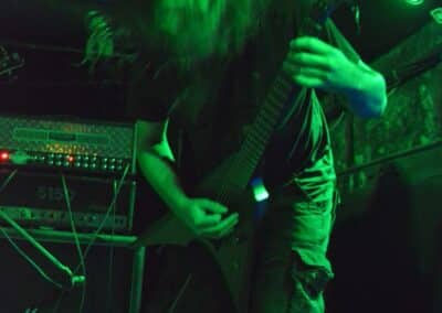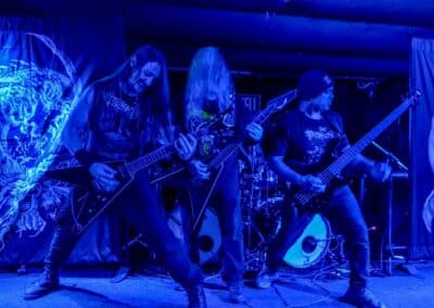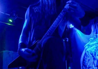 Sikerült pár perccel a kezdés előtt beesni a Supersonic-ba. Jegyvásárlás, puszi-puszi, létszámellenőrzés (bő fél ház a Malediction előtt tíz perccel), és már a húrokba is csaptak a pécsi fiúk. Minden ilyen beszámolónál notóriusan leszögezem, hogy én alapvetően black metal-t hallgatok, és a hasonló jellegű eseményekre alapvetően művelődni és tanulni járok – és azt hiszem, hogy van is mit. A Malediction neve évtizedek óta megkerülhetetlen ebben a műfajban: az a lendület, az a technikai tudás és az a hangszerelési potenciál, amit ők képviselnek, mindenképpen etalon a magyar underground borús egén. Nem is annyira a dalokra figyeltem fotózás közben, hanem inkább ezeknek megvalósítására. Számomra teljesen megfoghatatlan – és mindig a legnagyobb tiszteletet váltja ki –, ha azt a szintű technikai tudást látom, amikor egy elképesztően bonyolult és gyors dal eljátszása esetén a hangszerek kezelése szó szerint a hangszeren való játékot, és nem a hangszer megzabolázására tett kísérletet jelenti… és ez csak a beugró ennek a zenének a megteremtéséhez. Ez a technikai tudás, ez a képesség kivétel nélkül mindenkinél meghatározó volt; és mivel annak idején gitározással idegesítettem a szomszédokat, így nem tudtam a szemem levenni Várhalmi Ákos, Rákosfalvi István és Gábor András játékáról.