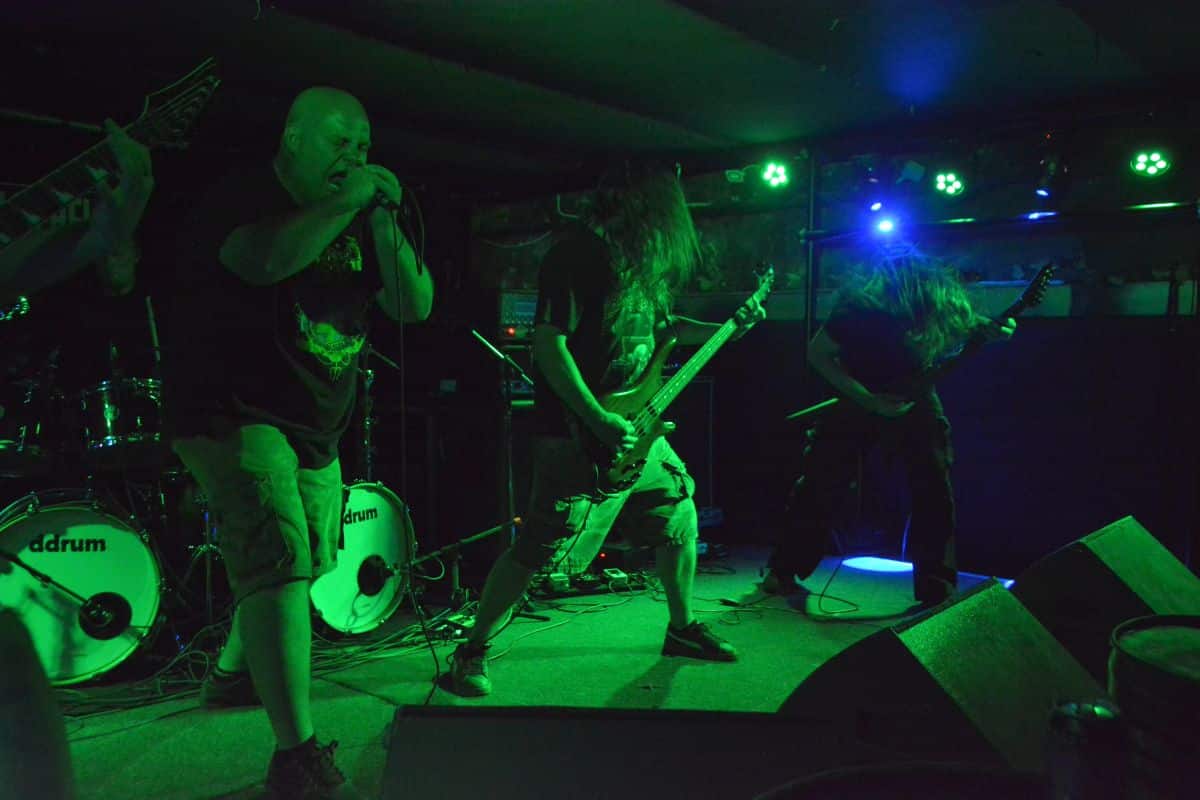 Nem volt a legegyszerűbb feladatuk, de annak valami elképesztő becsülettel feleltek meg. A koncert bejelentésekor derült ki, hogy Attila külföldre kell hogy utazzon, és hab a tortán, hogy Pósfai József gerince – könnyű szabadtéri agrártevékenység okán – tönkrement, így az öt főből három bizonyult bevethetőnek az estére. Azt hiszem, nagyon sokat elmond erről a zenekarról – és általában a műfaj hozzáállásáról –, hogy a megmaradt legénység nem a legegyszerűbb és leginkább kézenfekvő megoldást választotta: én mondjuk ebben a helyzetben pillarebbenés nélkül lemondtam volna a fellépést. Ám a trió egy korábbi beugróval, a minden hangszeren is anyanyelvi szinten játszó Czakó Dániellel pótolta Attilát, Jocó bőgője backing track-ről ment, így aznap este a Cryptic Remains vendégdobossal, kvartettként hat számmal szórakoztatta a közönséget (Orphans of Clarity, Abysmal Grief, Gardens of The Grey Decay, Soul Rot, Raped in Paradise, Horrid Vision). A fellépés elején úgy tűnt, hogy mindenki hazament: a Malediction után maximum kéttucatnyian lődörögtünk a színpad előtt, ám a zene hangjai lassan felszivárogtak az udvarra, ahol mindenki elszívta még az utolsó bagót, és idővel a közönség hiányzó része is visszatalált a színpad elé. A hangzás mint fentebb: tökéletes arányok, minden kristálytisztán szólt, Neco keverése példaértékű.