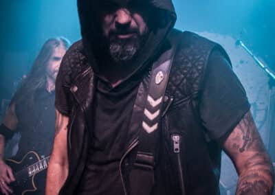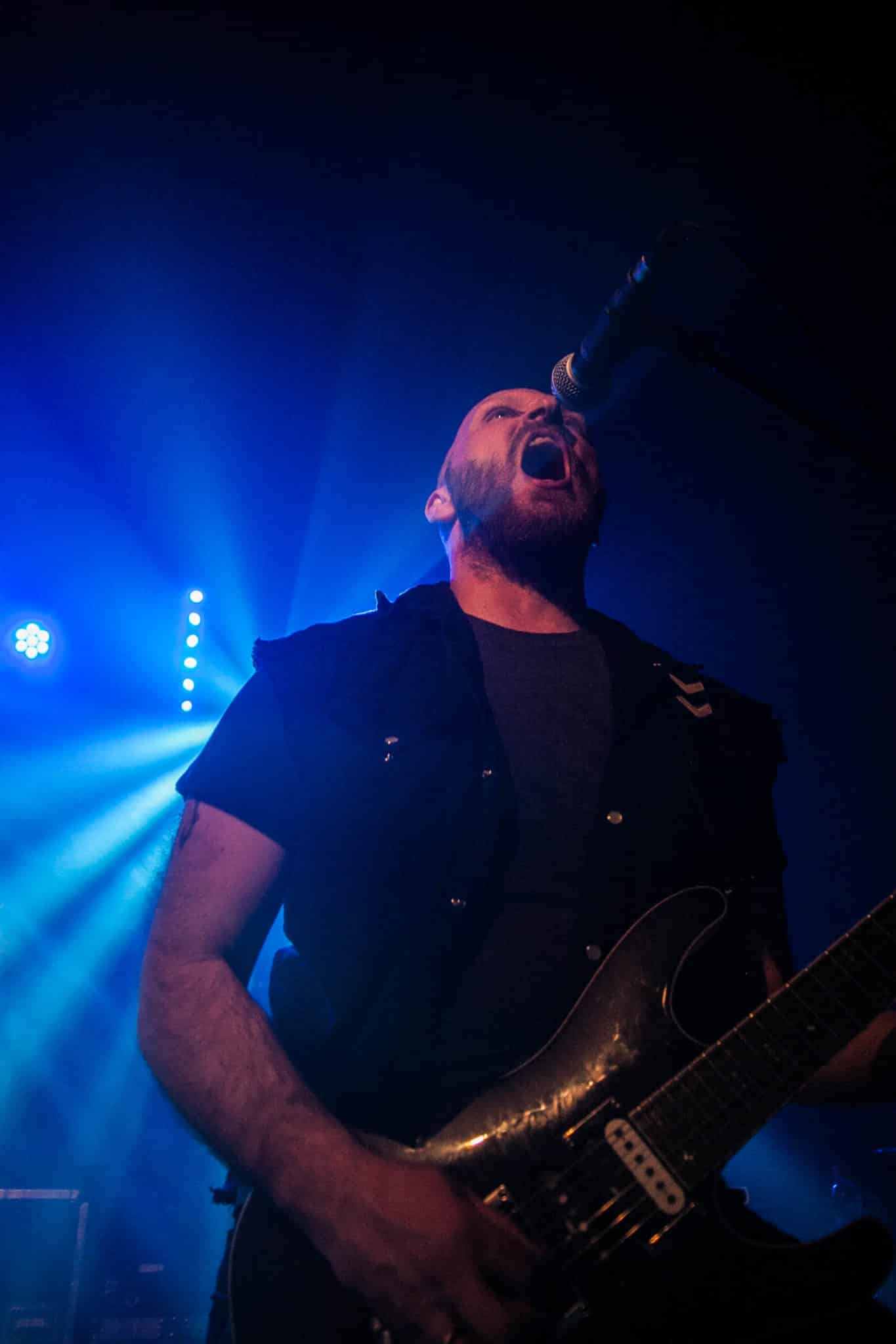 Nulla felhajtás mellett vonult fel a színpadra a már akkor is nagyon felspanolt állapotban lévő közönség elé az est első zenekara, a norvég Slegest. A nem feltétlen metalosnak kinéző csapat egyre több embert vonzott a színpad elé, áldásos ez a 041-es terme a Dürer kert-nek, ugyanis mint a legtöbb általam látott banda itt, ők is nagyon jól, szépen, tisztán szóltak. Persze nem a szenténekeké volt ez a félóra – mondjuk norvégoktól mit várnánk –, hanem bemutatták nekünk, milyen is az igazi északi mocsok. A black metal olykor punkosabb, olykor doomosabb oldalát mutatták, az egyik újalbumos (Introvert) dal mintha csak egy Kvelertak-nóta lett volna (úgy tűnhet, a black’n’roll a modernkori norvég népzene?). A mellénybe öltözött, nyakában első blikkre egy emberi csigolyát viselő frontemberről érdemes külön beszélni egy kicsit, ugyanis annyira látszott a színpadon, hogy ő most érzelmek tengerét éli meg, az énekek közt, a szólóknál, bizonyos dallamoknál egy festmény lehetett volna az arca, annyira kiültek rá a zene közben átérzett emóciók, ekkora beleélést ritkán látni. Mivel elég szűkös játékidőt kaptak, ezért túl sok beszéd nélkül darálták le a szetjüket, és a tűéles hangzás mellett (bár azért nincs túl sok hangszerrel dolga a hangmérnöknek), az avatatlan fülek is maximális elismeréssel bólogatták végig a teljes setet.