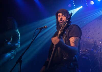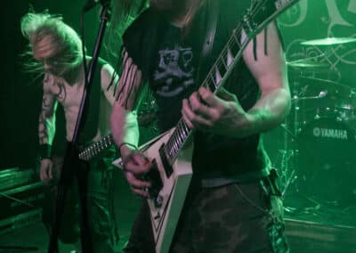 A Slegest után villámgyors átszerelés, és elkezdték a Vreid-et beüzemelni. Igazából a Vreid és a Kalmah zenéje is sok kiállással és szólóval díszített, ebből kifolyólag a hangosítás és a keverés kulcsfontosságú – és szerencsére ezen az estén a hangtechnika az elvárásoknak megfelelően tette a dolgát. Még el sem kezdtek a norvégok játszani, de már akkor lehetett érezni, hogy van valami a levegőben – a hallgatóság nem csendesen, békésen várta a Vreid-et, hanem folyamatosan üvöltve, időnként az zenekar nevét kántálva, úgyhogy már az első hangok megszólalás előtt is elég jó hangulat volt a nézőtéren, ami a zenészek megjelenése után tovább fokozódott. A norvég zenekar meglehetősen erős dallamokban – az ős, a Windir dallamai egy csomó esetben az sogndali népzenéből származnak, tekintve, hogy a zenekar lelke, Terje nagyon erősen kötődött a népzenéhez (is) – emlékszem egy régi koncertvideóra, amin a backstage-ben unatkozó Terje éppen tekerőlanton játszik, mert akkor éppen az akadt a kezébe. A Vreid további specialitása, hogy a dallamokban meglehetősen erős zenét egy nagyon jó, pörgős, ellenpontozó dobolással támogatja meg, ezentúl pedig Sture gitárja az, ami egy folyamatos és biztos zenei alapot nyújt. A basszusgitár is tökéletesen szólt, pontosan úgy és annyira, ahogy és amennyire kellett, úgyhogy a hangzásra nem lehetett panasz.