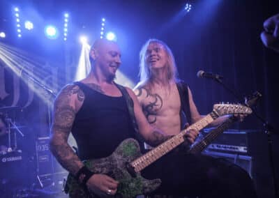 A pici színpadon sokkal jobban lehetett érezni a fellépés dinamizmusát, különösen úgy, hogy a zenészek gyakorlatilag karnyújtásnyi távolságban voltak a közönségtől. Az egész fellépést jól láthatóan és jól érezhetően szétvetett az energia (ezt hallottuk: Heimatt, Black Rites in the Black Nights, Disciplined, Lifehunger, Journey to the End, Væpna lengsel, Sólverv, Flowers & Blood, One Hundred Years, Raped by Light, Pitch Black), és ez a nézőtérre is tökéletesen átjött. A fellépés után volt lehetőségem az egész zenekarral beszélgetni – ezek a fiúk este tizenegykor is folyamatosan pörögtek, és amikor megkérdeztem tőlük, hogy mennyire fáradtak, akkor nagy röhögve mondták, hogy ‘basszus, egy ilyen fellépés után, hogy gondolod?’ Éles volt a kontraszt a Vreid legutóbbi koncertjével – ők is úgy emlékeztek, meg én is, hogy az a fellépés elég lagymatag volt, tulajdonképpen lement minden különösebb ovációt nélkül, itt viszont a hallgatóság is és a zenészek is teljesen fölpörögtek. A norvégok szerint a mostani turné legjobb közönséget kapták ki Pesten, és hát igazából sem a fellépőkre, sem a hallgatóságra nem lehetett panaszkodni. Tulajdonképpen ha az este ezen a ponton befejeződik, és mindenki elindul haza, már akkor is egy meglehetősen tartalmas bulin lettünk volna túl – de a java még csak ezután jött.