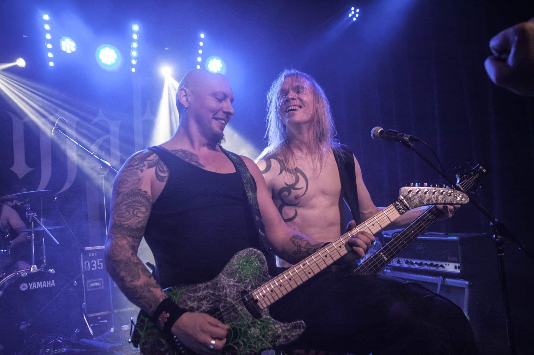 Az egész buli bizonyos szempontból az egyetemi időket idézte: az őslénytan professzorom – talán nem fog megsértődni, ha elárulom ezt a műhelytitkot – minden előadásán elmondott egy-két poént, amiket már egy jó ideje mindenki ismert. És azért ismertük, mert az általa kézzel írt előadásjegyzetben a tananyag mellett maguk a poénok is szerepeltek – hát így nézett ki Pekka Kokko saját felhasználásra szánt setlist-je is, ahol két számcím közé az elmondandó poén is oda volt írva. Miután kibökte, hogy az első sorban páran ezen röhögünk, teljesen függetlenítette magát az odaért poénoktól, és mondott mást, nem volt itt semmi gond.