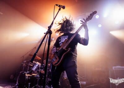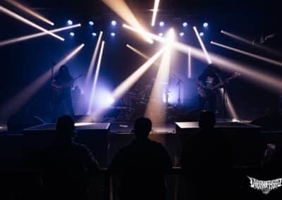 Harmadik performerként, a venezuleai / chile-i Selbst nevű black metal entitás szerelt felfelé a színpadra, mely eredetileg egy szólóprojektből nőtte ki magát teljes felállású zenekarrá. (Vélhetően csak az élő verzióhoz.) A Debemur Morti Productions kiadójánál jött ki a második nagylemez a Despondency Chord Progressions, (mint ahogy a labeltárs Ulcerate új albuma is) és az előzetes hallgatások során egy ígéretes és egyben impresszív zenei utazás képe rajzolódott ki előttem. A Selbst szellemi atyja, N, vendégzenészekkel kiegészülve adta elő disszonáns témákkal gazdagon átszőtt, sűrűn texturált black metalját, amely valahol a Deathspell Omega / Svartidauði / Mgła által behatárolt területen mozog, de ezek inkább irányadók, a Selbst valójában önmaga, saját személyisége van. Sajnos ezen az estén a sound nem az ő oldalukon állt, visszahullott a Black Mass szintjére, a dobot nem lehetett kihallani / kihámozni a mixből. Nem voltak meg a hangszeresek közötti arányok sem. Többen mondták, hogy az első pár sorból hallgatva szinte tökéletes volt a hangzás, én a keverő környékén álltam, ott ez már egyáltalán nem volt elmondható. Pedig ügyesen játszottak, van mélysége-veleje és húzása annak amit a Selbst csinál, a sok atmoszférikus sötétségnek köszönhetően megvolt benne az a plusz, ami teljesen magával tudja ragadni az embert. Agyalós zene, befelé forduló, az egyedi dallamvezetés is ezt az élt erősíti, nagy kár, hogy nem tudott maximálisan érvényesülni majd kinyílni a zenekar hangosítás terén, de ez néha benne van a pakliban. Az biztos, ha legközelebb jönnek mint headliner, szívesen megnézem őket, bárhol is legyen az.