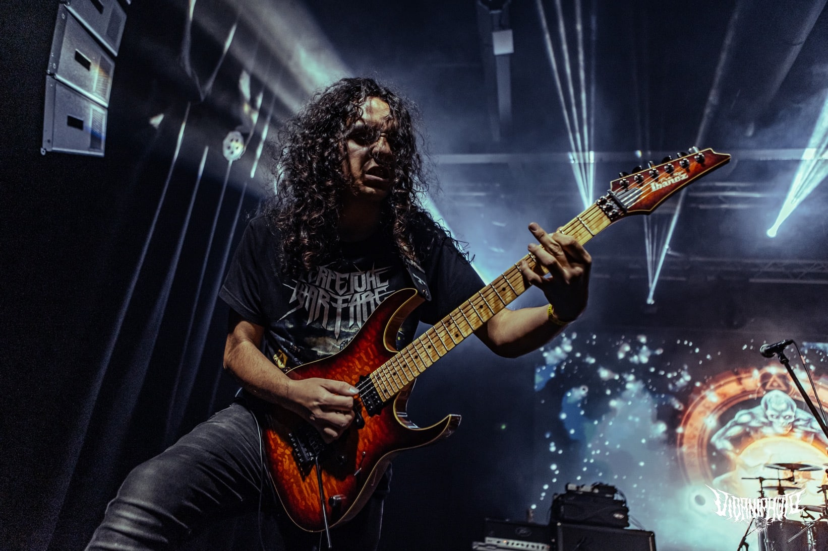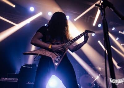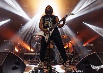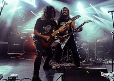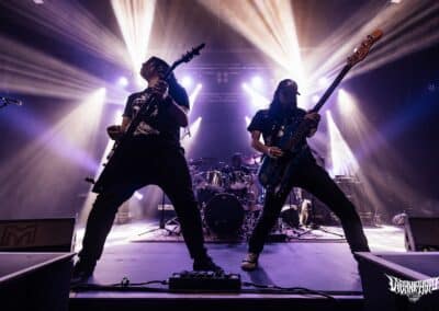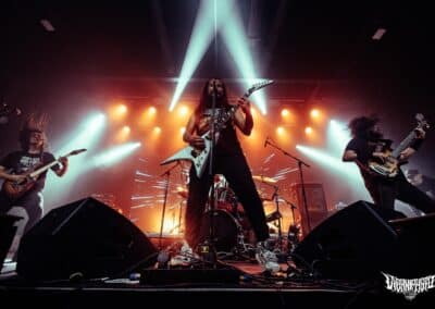 A Perpetual Warfare nevéről sosem hallottam, de bevéstem a noteszembe, ugyanis rám robbanásszerűen hatott zenéjük. Thrash metal, csak a modernebb vonal, de nem kifejezetten neo-thrash követők, inkább innovatívnak mondanám amit csinálnak. Hosszabb és átgondoltabb dalstruktúrák megspékelve csipetnyi death metal szigorral. Az Exodus / Slayer tuti sokat pörgött náluk a próbateremben, de az ide-oda becsempészett alattomos kiállások / riffek és breakdownok csavartak egyet a sztorin. Izgalmas mix, élőben eléggé adta is. Nagyon frankón megdörrent alattuk a cucc – ezt vártam – rutinosan súlyzóztak a gitárosok, meg olyan intenzív showt láthattunk a kedves kolumbiai harcosoktól, hogy azt bármelyik banda megirigyelhetné. A dobosuk, Esteban Diaz játéka sokkal jobban / szebben kivehető volt mint a Black Mass esetében, ügyes kezű és lábú ütős, minden fillje / beütése a helyén volt. Lehetett volna még azért tolni / javítani a hangzásukon, de rettentő felemelő érzés valahol, hogy egy számomra ennyire ismeretlen banda, ekkorát tudott zúzni élőben. Le a kalappal előttük, nagyon penge amit a Perpetual Warfare művel, tessék őket csekkolni!