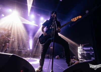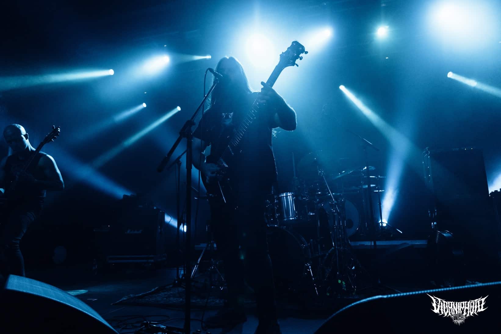 A nyitózenekar hálátlan szerepe a Black Mass triójának jutott. Az emelvényen fenn az Ulcerate ütős Jamie Saint Merat egyéni drum setupját csodálhattuk végig, elől pedig kiépítettek egy kisebb dobcuccot és mindenki azon tolta le a bulit – ez bevett szokás. Hangzásuk so-so kategória, kissé tompa, sok a mély, a subok bekebeleztek mindent, de leginkább a dobosuk játékát. Pergőt elvétve vagy csak alig lehetett hallani. Becsületesen nyomták az old-school thrash metalt, melynek gyökerei egészen a 80-as 90-es évekig nyúltak vissza. Nem technikázta agyon a bostoni csapat, odaverték ahogy kell, kezdésnek tökéletes volt a Black Mass.