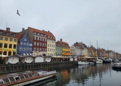 Koppenhágába érkezésünk napján csak várost néztünk, a koncert másnap volt. A reptérről önjáró metrók visznek be egyenesen a városba, be tudsz ülni legelőre „vezetni” a szerelvényt az ablak alá ragasztott matricák segítségével. Körülnéztünk a szállásunk felé vezető belvárosi utcákon, és az egyik első célunk volt reggelit szerezni. Találtunk egy kisboltot, ahova betérve furcsa látvány fogadott: az először apró, kedves élelmiszerboltnak tűnő egységben lehetett kapni könyveket, higiéniai termékeket, szuveníreket, elektronikai temékeket, dohányt, és még khm, vibrátorokat is. Mi maradtunk a péksüti-kakaó kombónál – amilyen drágák voltak a péksütik, olyan istenien maradandó élményt okoztak, komolyan mondom, talán sose ettem ilyen finom pékárut. Vettünk hozzá kislányos grafikás Matilde kakaót, ami Kristófnak nagyon ízlett, szerintem pedig volt egy műanyagszerű mellékíze. Egy pár órát muszáj volt csavarognunk a hidegben, aztán bepróbálkoztunk, hátha kicsit előbb átvehetjük a szobánkat, és szerencsénkre bejött. A Budapesten is megtalálható o&a Hostelben foglaltunk szállást, ami a kedvező ára ellenére sokat nyújtott és nagyon élveztünk ott lenni. A szoba maga és a közösségi terek is nagyon kellemesek voltak.