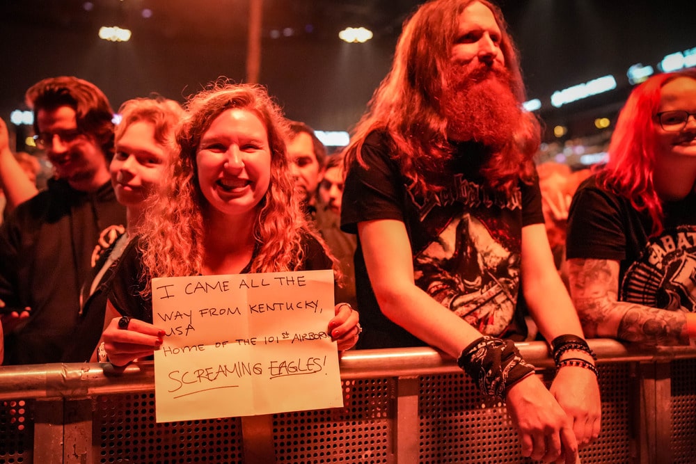 Kristóf elmondása alapján tudom, hogy a fotósok egészen különleges, eddig sehol nem tapasztaltan kiemelt bánásmódban részesültek. Maga a Sabaton PR-osa vezette körbe őket a lelátón és az árokban, megosztva minden egyes információt és tippet, hogy mikor, hol, milyen szögből milyen fotókat tudnak készíteni, hol találják a magasítóként használható sámlikat, a koncert melyik percében lesz piró, tűzijáték, látványosság, kiskutyafüle. A fotósok megkapták a beosztást is, hogy ki mikor honnan készíthet képeket. Amikor nem lentről, akkor a lelátóról is fényképezhettek. Kristóf nem győzte hangsúlyozni, hogy mennyire segítőkész és kedves volt a srác, mindenben támogatta őket. Plusz, egy nagy fekete borítékban, melyet egy fényes Sabatonos matricával zártak le, megkapták a teljes setlistet a részletekkel: mikor mi lesz a díszlet, piró, mikor jön a kórus, telefonvakus „öngyújtózás”, konfetti, stb., és egy levelet is mellékeltek a PR-os sráctól (a fotóspass mellett).