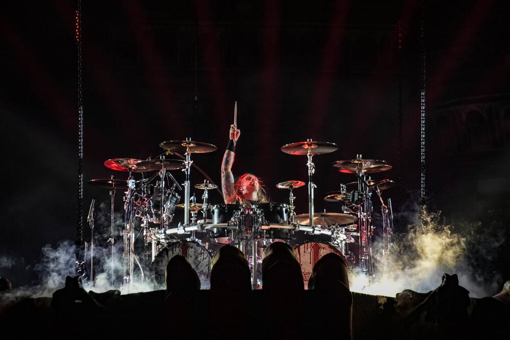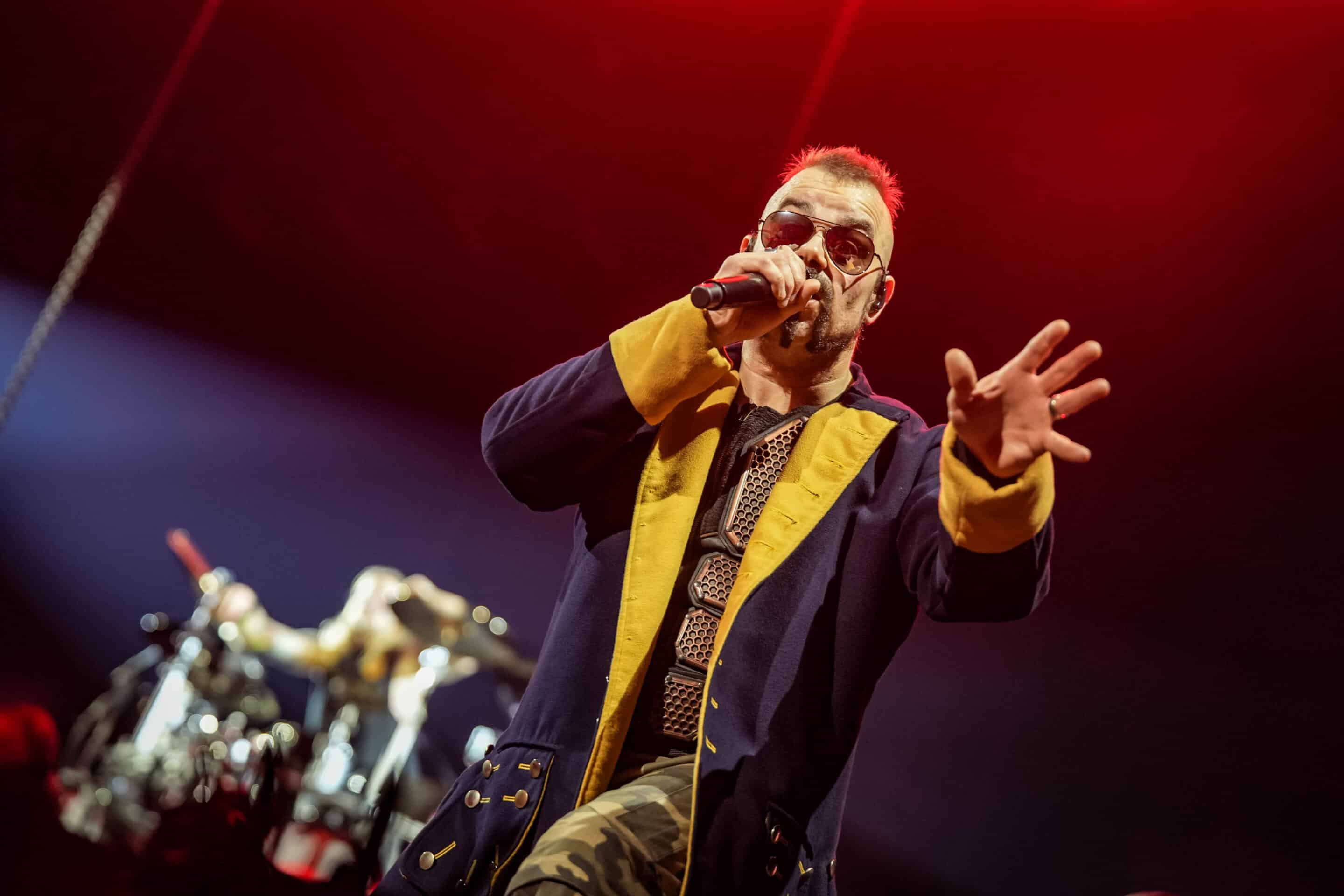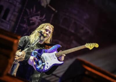 Joakimon kívül egyébként sokat nem mozogtak a zenészek, de emiatt szerintem senkinek nem volt hiányérzete, mert így is olyan látványos műsort adtak elő, hogy erre már nem is volt szükség. Joakim karakteres kiállása és a tagok élvezetes játéka és szeretnivaló személyisége önmagában is elég volt a sok kellékkel és díszlettel együtt. Valamelyik dalnál Joakim buzdította Chris Rörland gitárost a táncra, aki erre sajátos mozgáskultúrával adott elő egy olyan szórakoztató koreót, hogy Joakim nem bírta ki nevetés nélkül, és még éneklés közben is belenevetett a mikrofonba. Szeretem az ilyen emberi pillanatokat a legnagyobb zenekarok koncertjein is, ahol nagyjából minden momentum percről percre meg van tervezve.