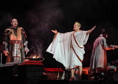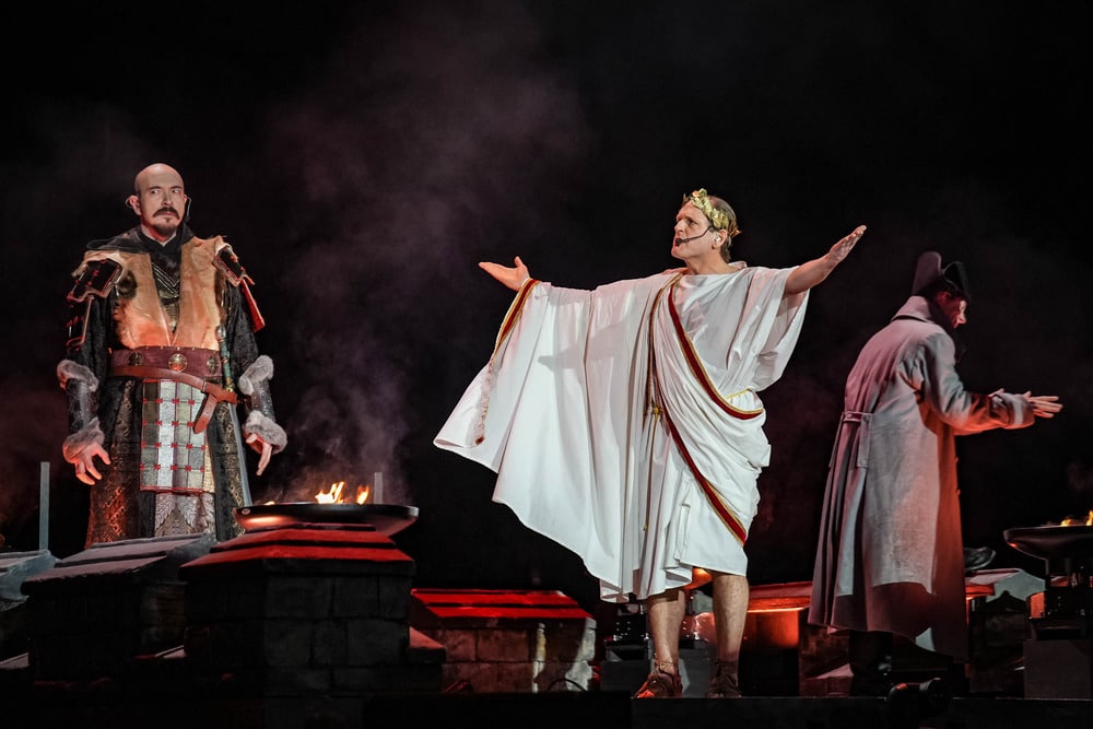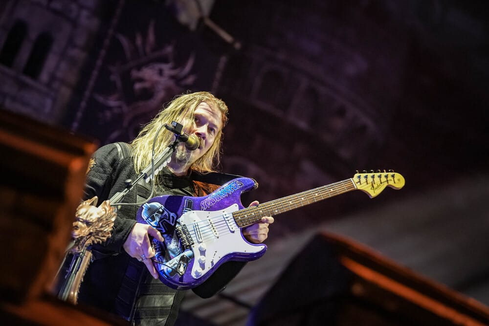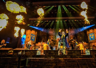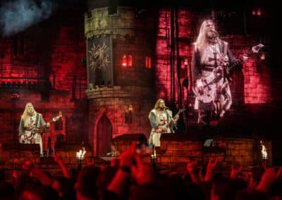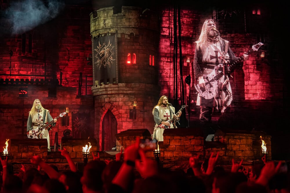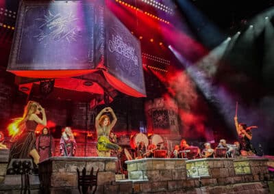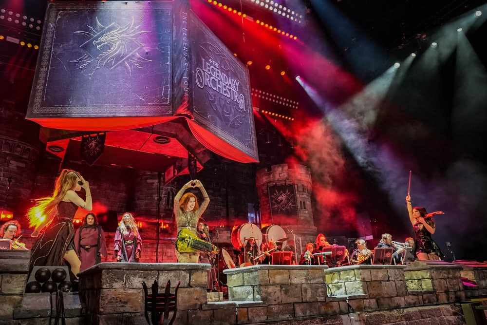 A The Legendary Orchestra kezdte a műsort megszámlálhatatlanul sok tagjával és mesébe illő díszletével, megjelenésével. Az orchestra idén, 2025-ben alakult meg Pär Sundström, a Sabaton basszusgitárosának elképzelése nyomán. A Sabaton-dalokat saját értelmezésében előadó zenekar vonósokból, fúvósokból, perkásokból, egy kórusból, Mia Asano hegedűsből (amennyiben az a hegedűre hajazó kis elektromos gitárizé nevezhető hegedűnek), Patty Gurdy tekerőlantosból (aki több hangszeren is játszott), valamint Noa Gruman énekesnőből állt, aki amikor épp nem énekelt, akkor vezényelt és nagyon táncolt. Mögöttük és körülöttük egy hatalmas vár felelt a történelmi hangulatért, a művészek feje fölött pedig egy óriási könyv lógott, az előzenekar nevét hirdetve.