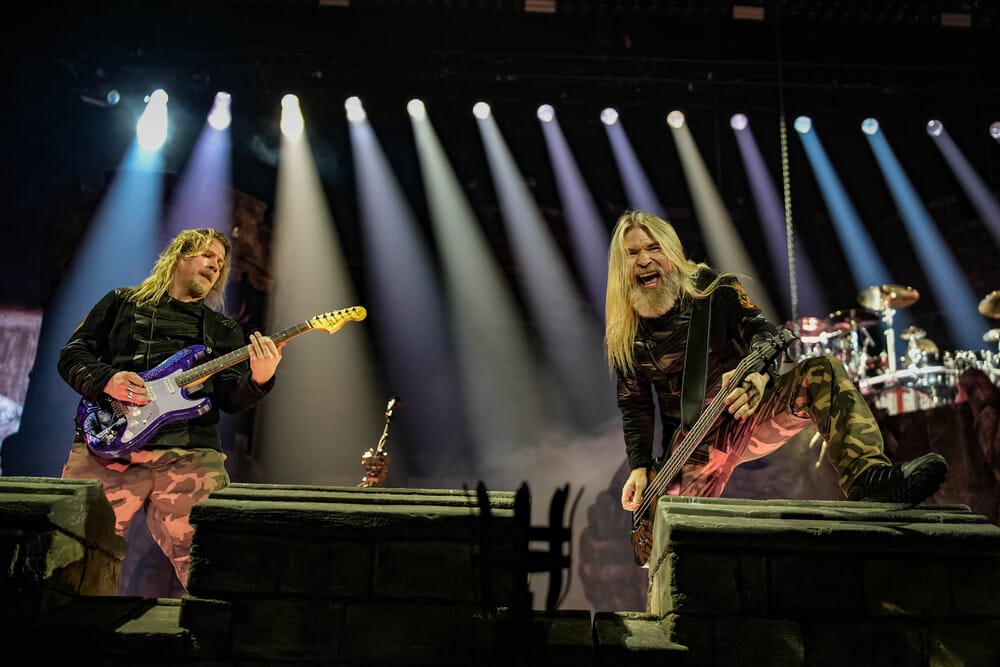 Külön érdekességként Hannes felkonferálta a zenekarból 2016-ban kilépett, de tavaly visszatért gitárost, Thobbe Englundot, akit most is láthattunk a színpadon Stormtrooperes gitárjával.