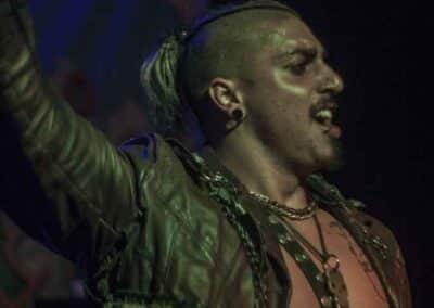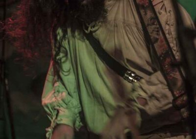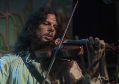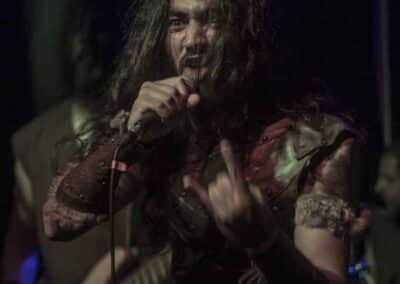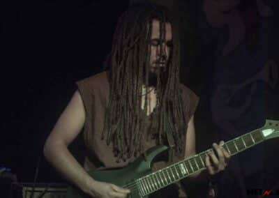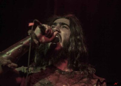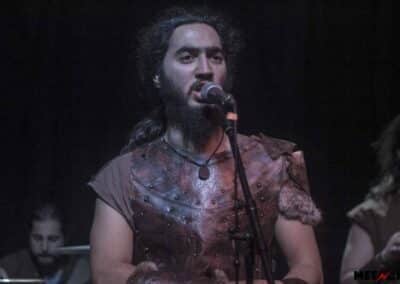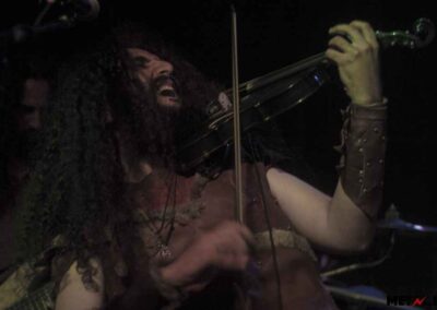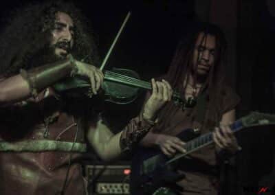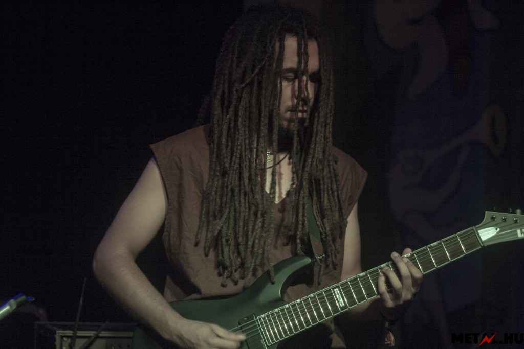 Végül is viking témájú folk metalt mindenkinek szabad játszani. Nagyon érdekes, és egyben furcsa is volt, mi viszi arra a tunéziai srácokat, hogy ilyen zenét játsszanak? Mindenestre tényleg nem mindennapi kép volt az arab urakat csizmákba és bőrökbe öltözve Odinról énekelve látni. Nemcsak ez volt annyira feltűnő a színpadon, hanem az is, hogy marha sokan voltak. Konkrétan hét tagot sikerült összeszámolnom, ami többhangszeres folk metal zenekaroknál annyira nem hatalmas szám, de azét ezen a kis színpadon nagyon sűrűn álltak a zenészek – kerülgetni is kellett egymást, hogy mindenkit lásson legalább egy kis időre a közönség. Nagyon jól teljesítettek és lekötötték a hallgatóságot, az egyik srác, bár vagy 3-4 furulyán játszott felváltva, nem kapta meg az összes figyelmet, ugyanis sokszor a szemünk inkább a hegedűsre irányult, akinek hatalmas göndör loboncába a beleélősebb headbangeléseknél rendre beleakadt a vonója, de hát kitérdekel… 😀