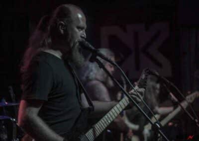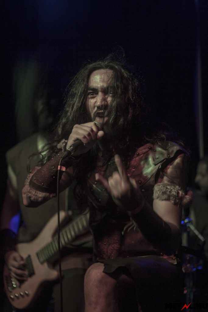 A külföldi fellépőknek a helyi Kylfingar melegítette be a színpadot. A csapatról már elég sokszor olvashattatok hasábjainkon, de a jelenlegi koncert egy kicsit eltért az eddigiektől. A csapat dobosa nem tud részt venni az őszi koncerteken, ezért a színpad most másabb képet mutatott, és így a produkció is rendhagyó volt. Mondhatnánk, hogy mindig van minek örülni, mert így közeli stúdióminőséget kaphattunk, a billentyű mellett a dob is felvételről ment, néha kicsit furcsa is volt, hogy a szabályszerű kalapálás nem egyezett a koncerthangulattal. Ez persze senki kedvét nem szegte, ment a hejjegetés a különféle dalokra, és a mély headbang a lassabb Helheim-ra, na meg persze a poénkodás, ha már olyan jó kis családias hangulat volt. „A következő dal a lányoknak szól!” „Acélszíííív!” „Nem a buziknak…” Jó kis bemelegítés volt a Kylfa showja, a magyar vikingek után pedig színpadra léptek a… tunéziai vikingek…