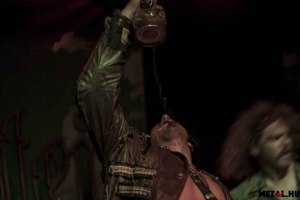 Az ausztrálok is heten voltak a színpadon (és bármilyen meglepő, nem fejjel lefelé!), és ők sem nagyon fértek el egymástól, bár rajtuk aztán kicsit sem az látszott, hogy a heringparti zavarná őket, hanem mindenki megtalálta a helyét, és még hangulatosnak is tartották, csak úgy, mint a közönség. Sorra jöttek a jobbnál jobb számok, a Pirate Music Piracy, Drink the Rum, Down the Hatch (amire hatalmas pogó alakult ki), és még a zenekartagok is beugrottak, hogy szépen lassan a frontember Cptn. Gregarrr mögé besorakozva egy nagyon táncolós, sikongatós, jóféle circle pit alakulhasson ki, amibe a jelenlévő Ymyrgar tagjai is becsatlakoztak, és a German Fun Times végére körülbelül az egész terem körbe-körbe rohangált. Nemcsak vadulásról szólt persze az este (bár főként arról). A zenekar által nagyon szépen összehozott földre leülés bár egy iszonyat klisés momentum, de így is, amit a Drink ‘Til We Die alatt összehoztak, az egyik legszebb koncertélmény az egész évben. Több zenekartag is lemászott a színpad elé (most nagyon jól jött a kisterem, a kordon hiánya, az alacsony színpad), ki-merre leült a közönség köré, mi pedig körülültük őket, és együtt énekeltünk és csápoltunk.
