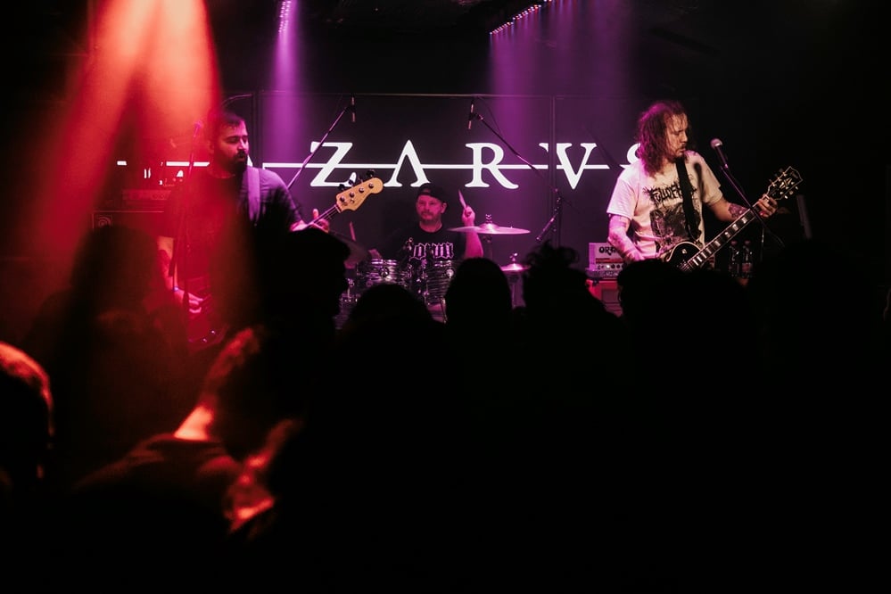 Az Áron Andris vezette trió fontos átalakuláson ment keresztül, aki követi a híreket, az bizonyára tudja, hogy a Prepelicza Zoltán (basszusgitáros) már nem tagja az együttesnek, helyét a Dungaree-ban tevékenykedő Balogh Attila vette át. Nem akármilyen feladat ez, sőt. Ez a második találkozásom velük ebben a felállásban, tudom, hogy páran visszasírják a Zolis korszakot, de együtt kell haladni a változással, a legnagyobb bandáknál is történtek hasonló szituációk, nem dőlt össze a világ. Nyílván embere válogatja, vagyis a rajongó szemszögéből nézve minden ember máshogy „processzálja” ezeket a dolgokat (csak egy példa: valakinek máig Dead énekével Mayhem a Mayhem, valaki más pedig Csiharra esküszik és még sorolhatnám reggelig ezeket az ellentéteket). A kérdés számomra ilyenkor mindig az, hogy milyen az összkép. Mi az, amit EGYBEN mutat. A Lazarvs esetében pedig nekem most is maximálisan megvan a feeling, amit régen nyújtottak élőben. Oké, kétszer láttam őket a friss felállással, minimális aggályaim nekem is voltak, de Attilát személyesen ismerve, semmi kétségem nem volt afelől, hogy maradéktalanul helyt fog állni. Ha a megfelelő embert keresték erre a posztra, akkor ő az. Nem lehetett egyszerű, ebben biztos vagyok, nem kevés munka egy ilyen életmű / koncertprogram megtanulása, szóval minden elismerésem érte.