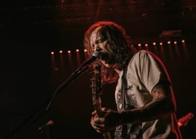 Allezusammen, másfél órányi stoner – doom – sludge metal ólomöntést kaptunk a nyakunkba, csodásan masszív wall of sound utánérzéssel. Brutálisan berobbant a hangzás az intrót követően, két apróság ragadta meg a figyelmem: Andris gitárja nem kaszabolt szét eléggé, illetve az ének nála valami miatt az elején halk volt. Szerencsére ez aztán javuló tendenciát mutatott – mindkét esetben. Tematikusan felépülő műsoruk kb. ötöde után gyors hangszeres cseréket követően, érezhetően kikerekedett a hangkép, így minden kétségem elillant a kezdeti nehézségek miatt. Szinte minden albumról kaptunk áldást, de nagyrészt a Blackest tételeit hallhattuk az este folyamán. A Judas kivételével, az első blokkba az új opus leghúzósabb / koponyarepesztőbb számait sikerült összeválogatniuk a fiúknak, legnagyobb örömömre. Az olyan nóták, mint a Galatian, a Dominator, a Scum vagy a hidegrázós / befeléfigyelős vokálokkal előadott Perpetual Rule vagy akár a zseniális címadó (az a málházós / betonozós Gojira ízű riff rettentően adja) élőben sokkal brutálisabb, mint lemezen. Amennyire szokatlannak ítéltem meg először ezeket a dalokat, most azt mondom, lassan kezdenek beérni. Simán oda lehet őket tenni a nagy slágerek / közönségkedvencek mellé. Ugyanúgy bennük van a kellő mélység, képesek elvinni a hallgatót, pont úgy, mint azelőtt. A Hex albumos Death után, a második blokk az Apey & the Pea éra keresztmetszetére épült, a kihagyhatatlan trackek (Abraham, Nazareth, stb.) mellett a Methusalem könyörtelen pusztítása nekem nagyon hiányzott, de volt Solar King és Godslayer is. Dinamika és vitalitás terén mindig erős volt a Lazarvs, szerencsére ez a páratlan egység megmaradt Zoli távozásával is, úgyhogy aggodalomra semmi ok. Becsületesen végigtolták a srácok a 90 percet, mindenféle üresjárat nélkül (az ambient noise átvezetők kiválóak), Makai Laci kétlábgépes részei kegyetlen úthenger hatását keltették bennem minden egyes alkalommal. Fifikás játékát öröm hallani / figyelni – de ez a többiekre is igaz. Zárásként megkaptunk még az arcunkba az elszállós Pothead örökzöldjét, ennél szebben nem is lehetne egy koncertet befejezni – a kör így volt teljes.