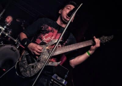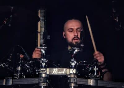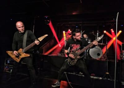 Az est második együttese a Corrpution volt, akik egy eléggé elismert zenekar Lengyelországban. A 90-es évek elején kezdték pályafutásukat és jelenleg a stoner metal műfajában mozognak. Azt hiszem velük eddig még nem találkoztam. Feljöttek a színpadra majd megszólalt az intro, én meg vakartam a fejem, hogy wtf, majd megjelent az énekes, aki kb. a lengyel verziója Rob Halford-nak külsőre. Nem az én világom, amit ők játszanak DE úgy álltak fent, olyan szívvel lélekkel élvezték, amit csinálnak, hogy én is imádtam minden percét. Mind a két nap ugyanezt a lelkesedést láttam tőlük. A számok témái nagyjából a pia, sex and drugs, metal and have fun, életérzésről szóltak. Nagyon éltek a színpadon végig mosolyogták, nevették, hülyéskedték, nyomultak. Az a jó koncert számomra, ahol nem nézek rá a telefonomra, nem kezdek el közben dolgozni online vagy nem azt nézem, hogy hány perc van még a főzenekar kezdéséig. Na ők pont ilyenek voltak mind a két nap alatt. Elsőre azt hittem, hogy biztos a Klub Kosmos titkos energiája miatt volt ez ilyen megkapó, de másnap is ugyan úgy szuper volt a Klub PODWÓRKO.art / Scena UCHO színpadán is. A közönség is vette a lapot, egyre többen jöttek. A fellépésük után pedig simán kijöttek a merchpulthoz és fotózkodhattak meg beszélgethettek velük az emberek. A Corruption-nek nem is olyan régen – egészen pontosan 2025. október 3.-án jelent meg a legutóbbi albuma, Tequila Songs & Desert Winds címmel. Főként erre épült a setlistjük, de a korábbi albumokról is szerepeltek dalok. Összességében zenei stílus ide vagy oda – maradandó nyomott hagyott bennem a bulijuk és abszolút jó értelemben.