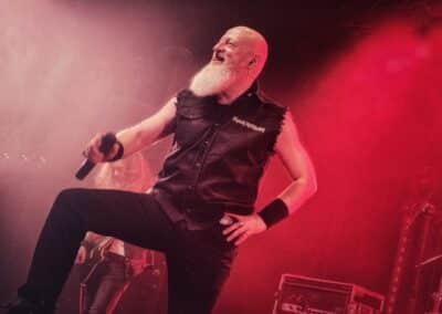 Végre következett, akik miatt valójában érkeztem: az Vltimas. A jelenlegi tagság: Rune Eriksen, David Vincent, Ype TVS, Joao Duarte és Nar-Sil. A dobos ezúttal most Daniel „Nar-Sil” Rutkowski volt, ő Pawel Jaroszewicz-et helyettesítette a dobok mögött. Azt kell mondjam, hogy ez a legjobb Vltimas show volt, amit valaha láttam. Voltam koncertjükön Angliában két alkalommal és több alkalommal más országokban is, de ez volt idáig a top. Ők azok, akik tényleg maximálisan oda teszik magukat minden egyes alkalommal. David Vincent átvezető szövegei kifejezetten érdekesek, figyelemfelhívóak. Például a Nature’s Fang-et azzal vezette fel, hogy haragszik ránk az anyatermészet és bosszúként meg fogjuk érezni milyen az, amikor belénk mélyeszti a fullánkját. Vicent mély, már – már ördögi beszédhangja remekül illik az általuk kreált zenei világba, igazán karakteres frontember. De ebben az együttesben mindenki külön – külön is erős karakterrel rendelkezik. Egy percre sem lassuló dob témák, Daniel kifejezetten ügyes dobos, mesterien darálta végig a teljes programot. Rune gyilkos riffjei is tökéletesen hozták a hangulatot. A közönség pedig abszolút csatlakozott hozzájuk és együtt ordították, hogy „HEY, HEY” vagy éppen, hogy „MANIFESTOOOO” vagy hogy „DIE – DIE – DIE”. Gdyniában elég szép moshpit alakult ki a bulijuk alatt. Kicsit meglepő volt ez számomra, mivel még talán sehol nem láttam moshpitet eddig Vltimas fellépés során. Bár az is igaz, hogy először láttam őket headliner pozícióban. A Klub Kosmos-t mint koncerthelyszínt továbbra is csak ajánlani tudom.