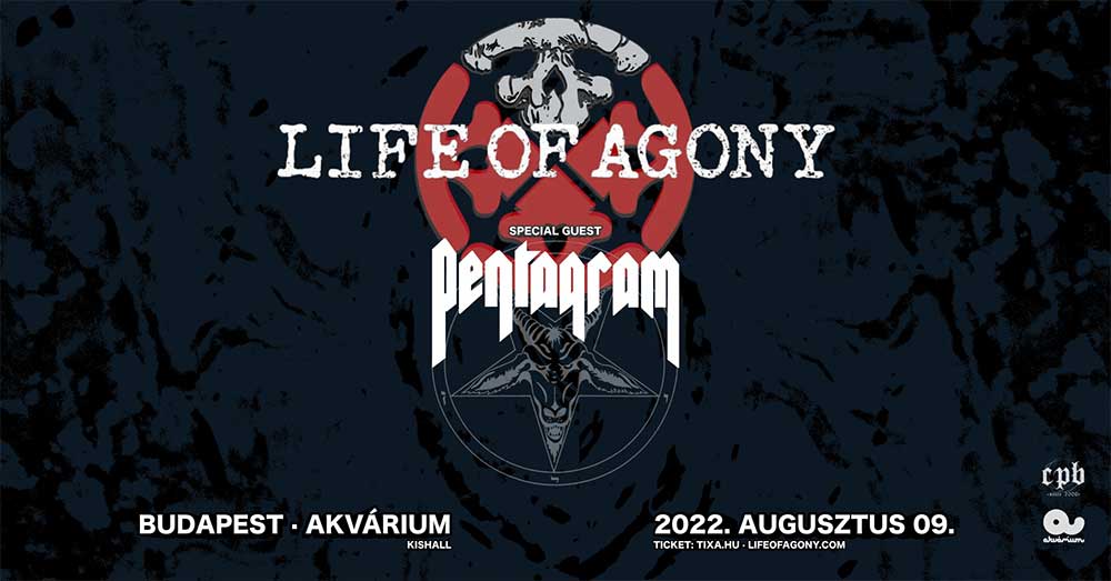 Augusztus 9-én kerül megrendezésre a New York-i Life of Agony és a Washington-i illetőségű Pentagram közös nagykoncertje az Akvárium Klubban. A nyolcvanas évek végén alakult Life of Agony az 1993-ban kiadott River Runs Red című debütlemezükkel robbantak be igazán a köztudatba. A kezdetben Crossover/Sludge/Thrash metal elemekkel szőtt zenéjük fokozatosan váltott át az alternatív Rock/Metal stílus felé és váltak egyre népszerűbbé. Több alkalommal is jártak már nálunk és bizony ez is egy remek alkalom, hogy a műfaj kedvelői kiéljék magukat a LOG legjobb dalaira!