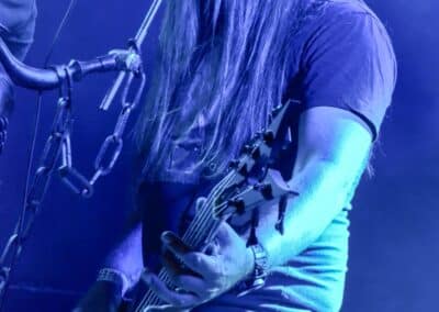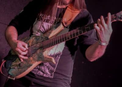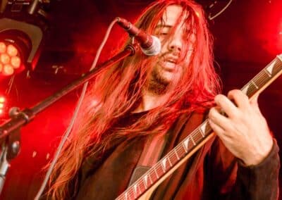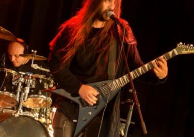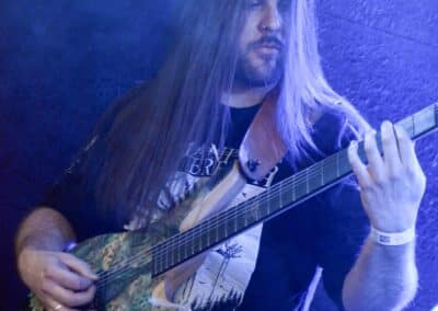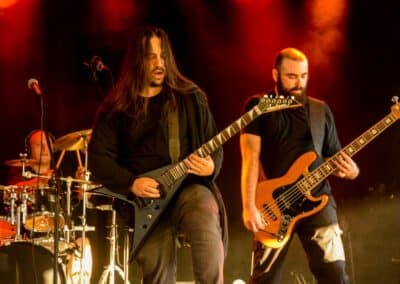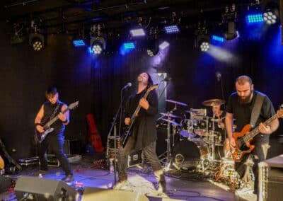 Elképesztően gyors átszerelést követően – tulajdonképpen perceken belül – következett a Sear Bliss; ők 11 dallal (The upper world, Seven springs, Watershed, Birth of eternity, Reverie, Night journey, As the bliss is burning, The pagan winter, Two worlds collide, Chasm, 1100 years ago) készültek az estére, és mint általában mindig, most is törekedtek arra, hogy egy viszonylag teljes keresztmetszetet nyújtsanak a zenekar eddigi működéséből. Természetesen nem hiányozhattak a régebbi albumok ritkábban játszott dalai, de ezzel párhuzamosan jó pár tétel elhangzott az új anyagról is. A korábbi fellépések során már hallottam pár dalt a Heavenly Down korongról, és igazából úgy tűnt, hogy ezek a számok teljesen szervesen illeszkednek az életműbe, tökéletesen belepasszolnak a már meglévő sokszínű portfólióba, és jól harmonizálnak a korai anyagokkal is. Kérdés volt meg még számomra, hogy a Marci által esetleg képviselt progresszívebb jegyek mennyire jelennek meg az új albumom. Természetesen ez nem lemezbemutató volt, de ezzel együtt az elhangzott dalokon nem lehetett érezni a progresszív elemek túlsúlyát – a konzervzenével összhangban. Andrásék az utóbbi időben sportot csinálnak abból, hogy addig alig játszott tételeket is felvesznek a setlistre – ilyen volt erre az estére az As the bliss is burning és a The pagan winter –, amiket a legnagyobb örömmel fogadott a jelenlévő hallgatóság.