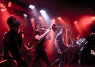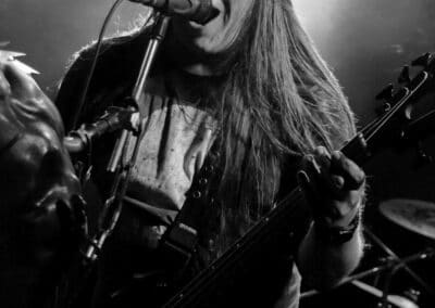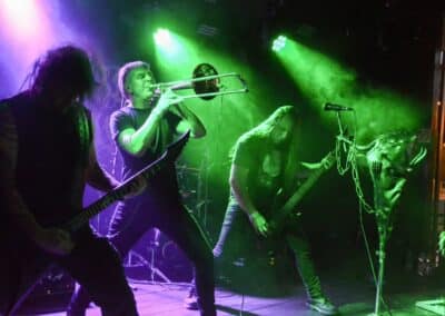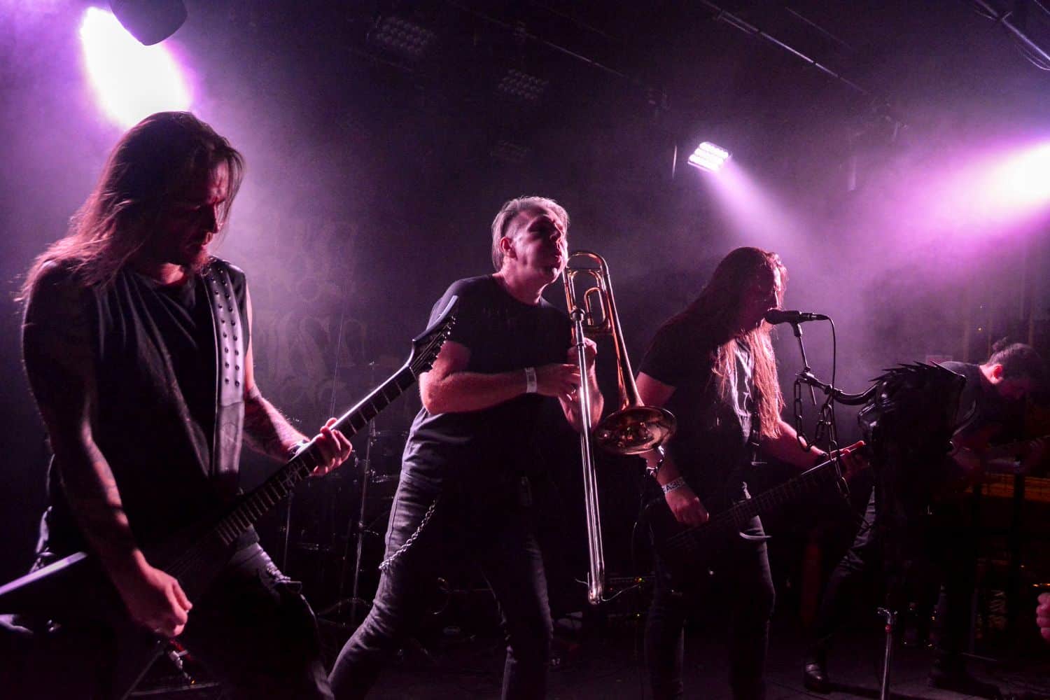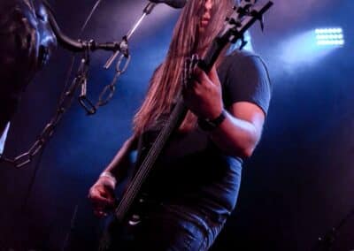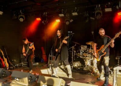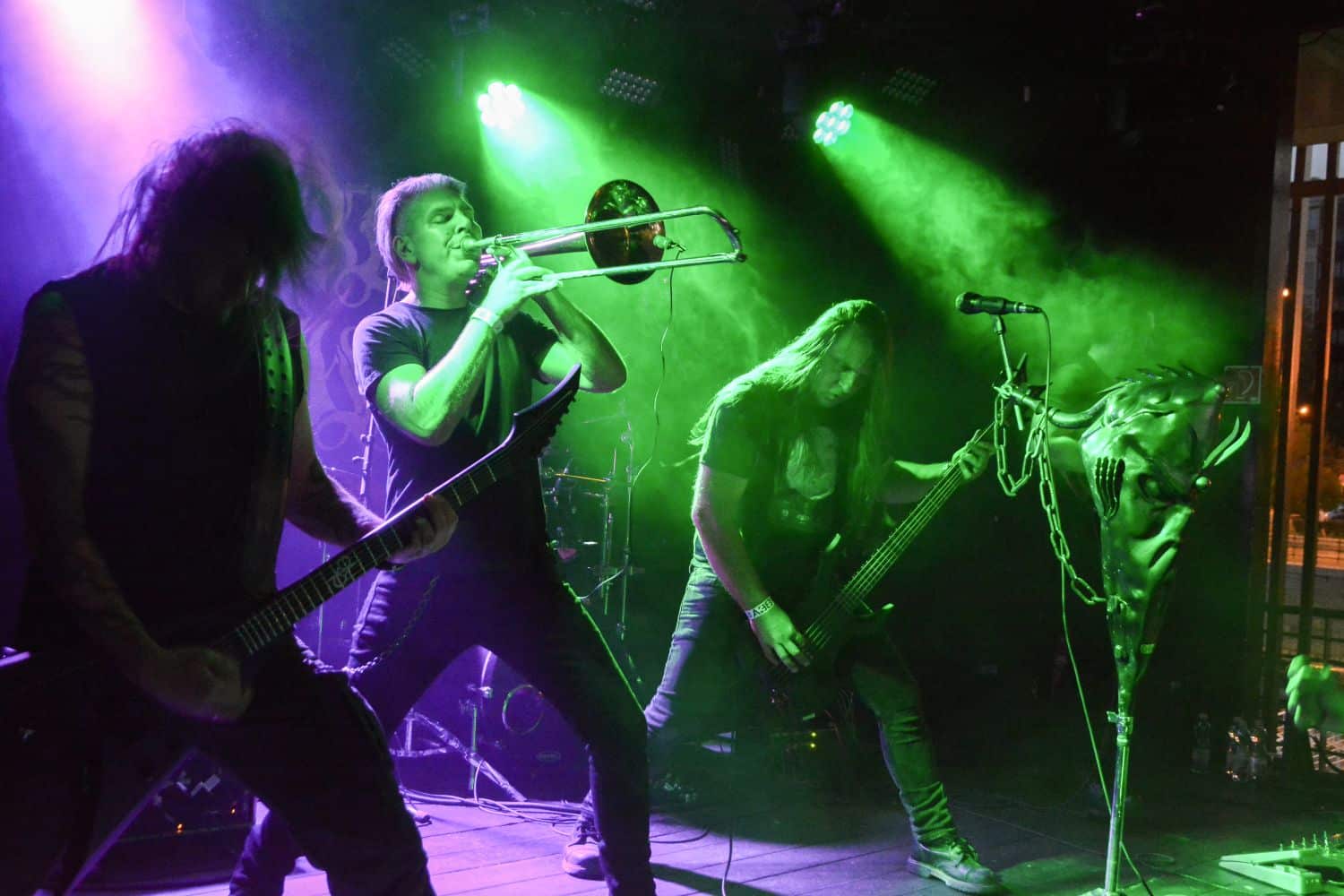 Már nagyjából elértük az első fellépés kezdésének időpontját, amikor befutott egy fekete furgon, több gyanús kinézetű figura ugrott ki belőle, az egyiken Warhymn feliratú póló: innen már nem volt nehéz összerakni, hogy az első fellépő érkezett meg, a saját fellépésük kezdéséhez képest pár perces késéssel. Jól láthatóan elmúltak már azok az idők, amikor mindenféle elől-hátul talált zenekart kapott az ember első fellépőnek – a Warhymn hangzása messze volt a tökéletestől, de azért így is remek ízelítőt kaphattunk a zenéjükből (Ancestral World, Occult Fire, Descendants of Cain, Originea, Fresh spring in the new world, Sadistic Crowning, Dominus terrae II). Dallamos, változatos dinamikával operáló black metal-hoz volt szerencsénk, és határozottan kellemes volt őket hallgatni; valószínűleg ezt az érzést nagyságrendileg fokozhatta volna, ha a kétszer fél gitár helyett mind a két gitár tökéletesen hallatszik. A Warhymn egy első albumos zenekar, tehát meglévő és összerakott anyagaik nagyjából felét meghallgathattuk, és ezzel együtt is, az embernek nem támadt olyan érzés, hogy gyenge és kidolgozandó zsengéket próbálnának rátukmálni, hanem határozottan korrektül összerakott dalokat hallhattunk. Összességében, nagyon jó kezdés volt, kiváló ötlet volt aznap estére meghívni a Warhymn-t – ha ez a társaság már az első albumára ilyen anyagot volt képes összerakni, akkor határozottan kíváncsi vagyok a folytatásra.