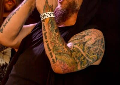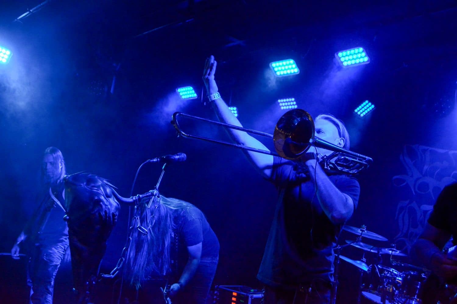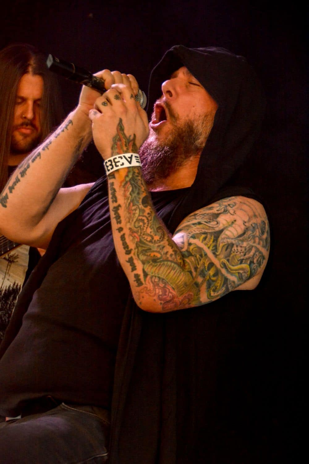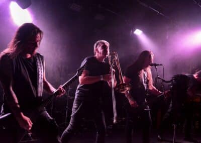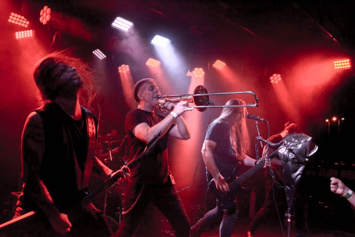 Már nagyjából elértük az első fellépés kezdésének időpontját, amikor befutott egy fekete furgon, több gyanús kinézetű figura ugrott ki belőle, az egyiken Warhymn feliratú póló: innen már nem volt nehéz összerakni, hogy az első fellépő érkezett meg, a saját fellépésük kezdéséhez képest pár perces késéssel. Jól láthatóan elmúltak már azok az idők, amikor mindenféle elől-hátul talált zenekart kapott az ember első fellépőnek – a Warhymn hangzása messze volt a tökéletestől, de azért így is remek ízelítőt kaphattunk a zenéjükből (Ancestral World, Occult Fire, Descendants of Cain, Originea, Fresh spring in the new world, Sadistic Crowning, Dominus terrae II). Dallamos, változatos dinamikával operáló black metal-hoz volt szerencsénk, és határozottan kellemes volt őket hallgatni; valószínűleg ezt az érzést nagyságrendileg fokozhatta volna, ha a kétszer fél gitár helyett mind a két gitár tökéletesen hallatszik. A Warhymn egy első albumos zenekar, tehát meglévő és összerakott anyagaik nagyjából felét meghallgathattuk, és ezzel együtt is, az embernek nem támadt olyan érzés, hogy gyenge és kidolgozandó zsengéket próbálnának rátukmálni, hanem határozottan korrektül összerakott dalokat hallhattunk. Összességében, nagyon jó kezdés volt, kiváló ötlet volt aznap estére meghívni a Warhymn-t – ha ez a társaság már az első albumára ilyen anyagot volt képes összerakni, akkor határozottan kíváncsi vagyok a folytatásra.