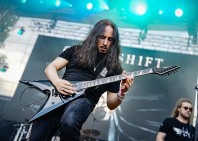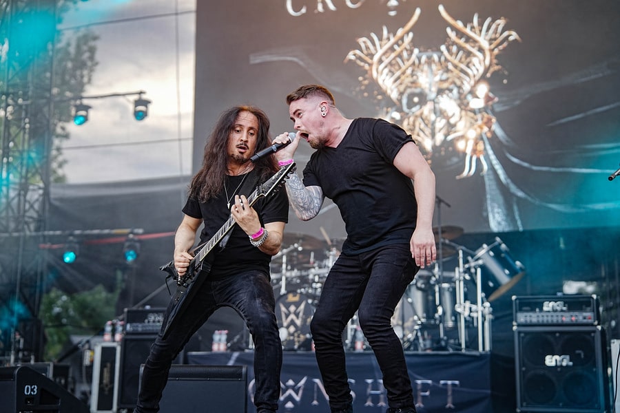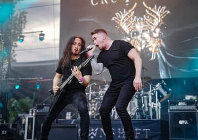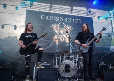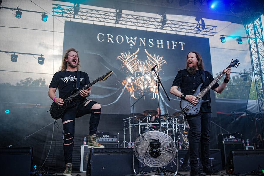 A nemrégiben alakult finn supergroup, a Crownshift koncertjét vártam legjobban. A debütáló albumukat megelőzően kiadott single-ök hibátlanul szólnak, természetesen profi munka, bár túl sok izgalmat nem találtam bennük. Amikor azonban kijött a teljes lemez, és elejétől a végéig meghallgattam, sokkal több jó témát, progos riffet és melodeath-gitárdallamot fedeztem fel benne, mint amennyi a single-ökből átjött. Így tehát a tagok személye mellett a zeneiségük is megtartott és kíváncsivá tett, vajon hogy adják elő élőben. A hivatalosan négy tagból – Tommy Tuovinen (ének, MyGrain), Daniel Freyberg (gitár, Children Of Bodom), Jukka Koskinen (basszusgitár, Nightwish / Wintersun) és Heikki Saari (dob, Wintersun / Finntroll) – álló zenekart a fellépéseken Jean-Claude Halttunen gitáros segíti ki. Természetesen a játékuk, az előadásuk, a rutinos színpadi jelenlétük hibátlan volt, folyamatosan kommunikáltak a (sajnos nem elég nagyszámú) közönséggel és minden tag hergelte őket, tehát látszott, hogy őszintén élvezik a bulit.