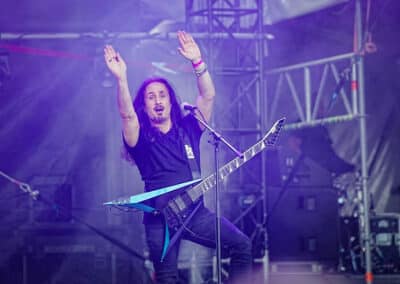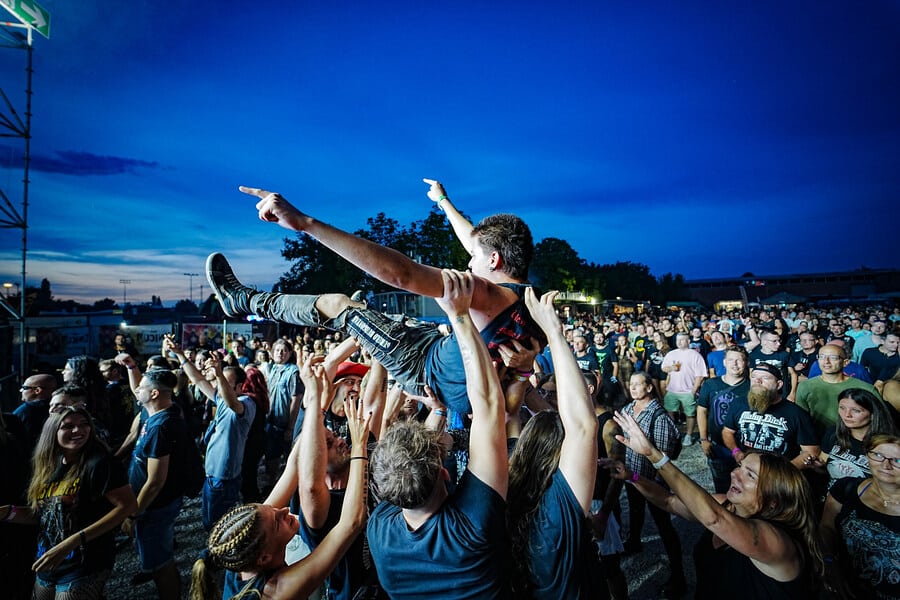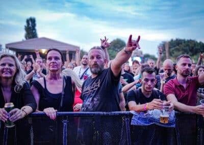 Kis „nemmetal” kitérő: alig hogy a Sodom befejezte a setlistet, már csorogtunk is át a Petőfi Sátor nevezetű színpadra, ahol Korda György és Balázs Klári crew-ja már koncertkészre szerelte a színpadot… A sátor csurig telt több generációt képviselő rajongókkal (vagy hozzánk hasonló érdeklődőkkel), akik közül többen is a “NAGYSZÍNPAD!” jeligét harsogták. A legendás énekespáros nagyon aranyos volt, de őszintén bevallom, hogy az első dal után futottam is vissza a már törzshelyszínünkké vált Fehérvár Nagyszínpad elé.