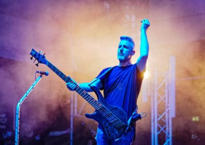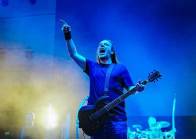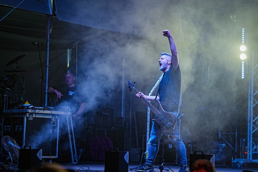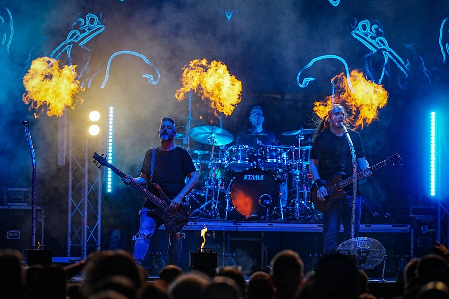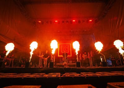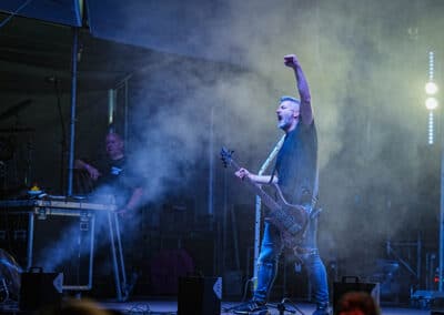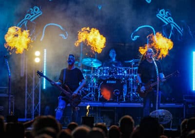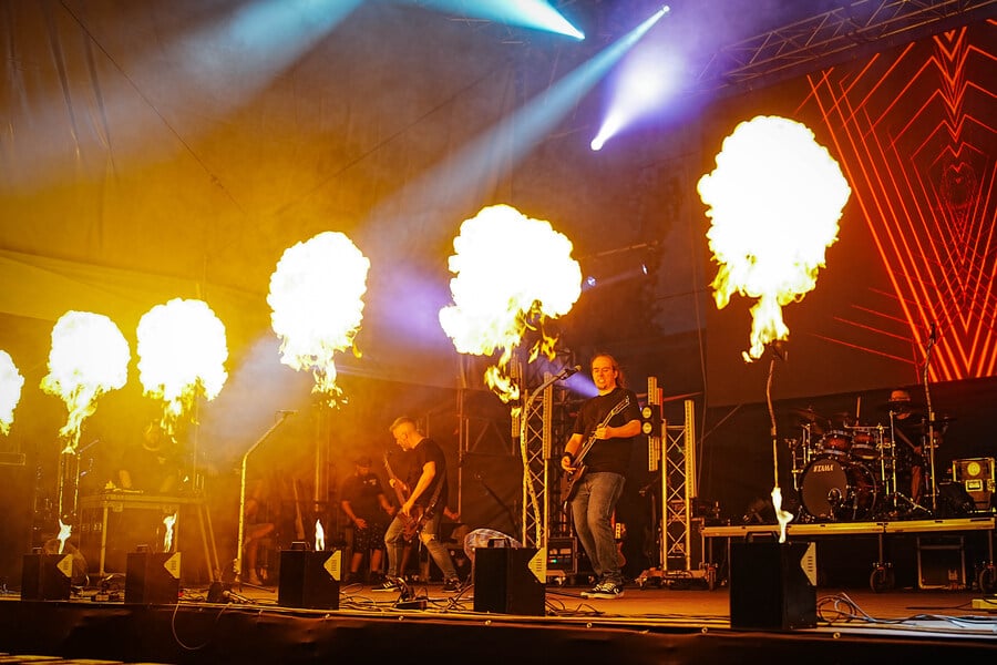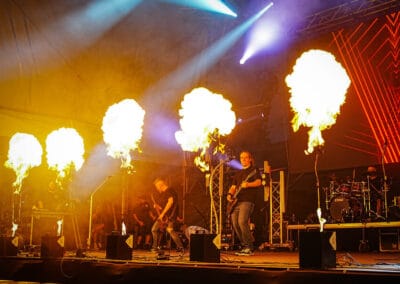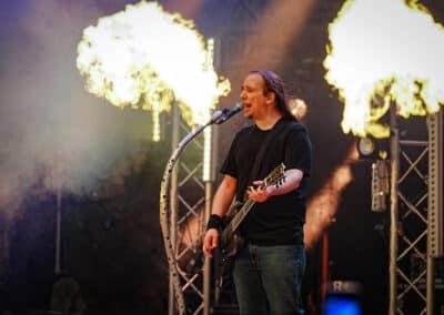 A Depresszió mint a jelenleg legnépszerűbb klasszikus magyar metalbandák egyike természetesen hatalmas bulit csapott a Fehérvár Nagyszínpadon. Szerencsére jó sokan eljöttek rájuk, és csapatták is az ugrabugrát meg a pogót. A magyar metal nagyágyúk bulija szerencsére nagyon jól szólt, ami visszaigazolta bennem, hogy a Crownshift esetében valami félremehetett. Minden frekvencia kellő aránnyal szólalt meg a helyén, kiemelve a zene groove-osságát, keménységét. Látványban szintén magas színvonalat nyújtottak, a fények, a díszlet, a pirók sokat adtak a színpadképhez. Ekkor a tűznek már kifejezetten örültem is, hiszen estére eléggé lehűlt a levegő… Az énekes / gitáros, Halász Feri minden egyes szám előtt hergelte a közönséget valami olyasmivel, hogy van-e kedvünk ezt vagy azt csinálni ma este a Depresszió zenekarral… Persze csak megőrülésről, bulizásról és headbangelésről ejtett szót, de szerintem szinte bármire invitálhatta volna a közönséget, ugyanolyan egyöntetűen ráordították volna, hogy ‘jeeeee’.