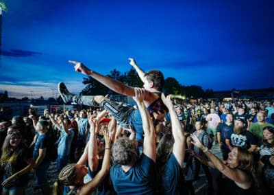 A Moby Dick koncertje volt az első, amin részt vettünk. A ‘80-as évek óta aktív metalzenekar még mindig szép számú és lelkes rajongótábort tudhat magáénak. A Fehérvár Nagyszínpad előtt hamar össze is gyűlt a tömeg, amint a húrok közé csapott az együttes. A klasszikus slágereikre a délutáni meleg ellenére is megmozdult a közönség, és kitartóan énekelt velük. Kiderült, hogy a törzsközönségükben felvidékiek is szerepelnek, akik kedvenc bandájuk miatt most Székesfehérvárra is leutaztak. A Moby Dick felállása egyébként kisebb családi vállalkozásnak is tekinthető, mióta Schmiedl Tamás, azaz ‘Smici’ énekes bevette fiát, Schmiedl Balázs-t a gitárosi posztra.