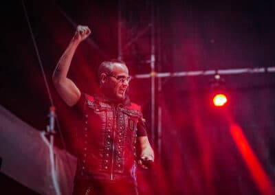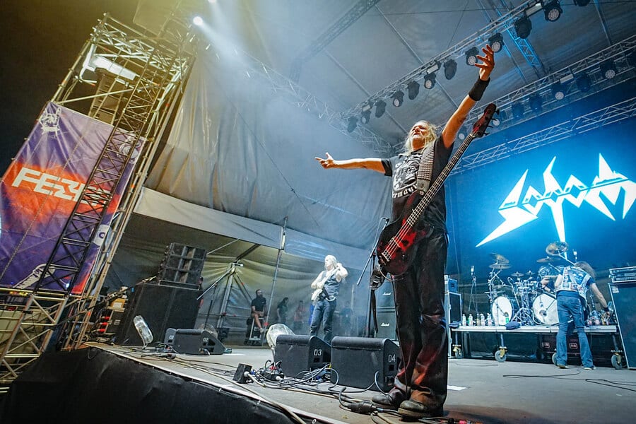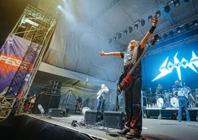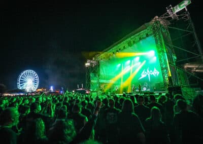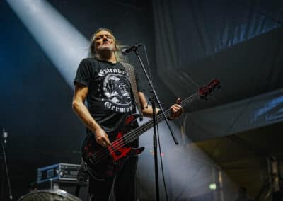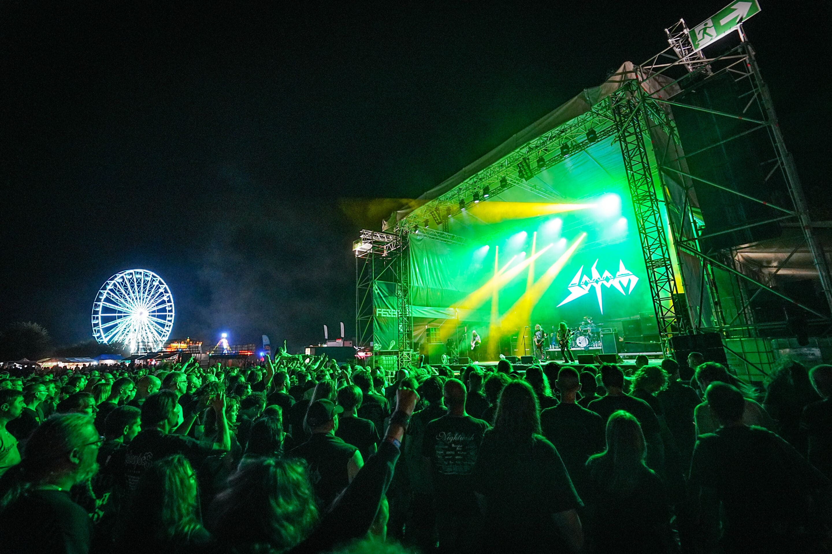 A Depresszió után a kultikus német thrash metal banda, a Sodom lépett az aznapi “metalszínpadra”. Mondanom sem kell, hogy rengetegen voltak rájuk kíváncsiak, hiszen elég ikonikus bandáról beszélünk. Nevükhöz méltón hatalmas bulit sikerült csapniuk, a közönség imádta őket, aminek láthatóan nagyon örült a zenekar. Tom Angelripper énekes-basszusgitáros lépten-nyomon megjegyezte, hogy milyen jó közönséggel találták itt szembe magukat, és milyen hálásak, hogy itt lehetnek. A Sodom hangzásáról annyit tudok nyilatkozni, hogy a PA-ken kívül, a színpad oldala felé állva jól szóltak – középre ezúttal nem mentem be.
