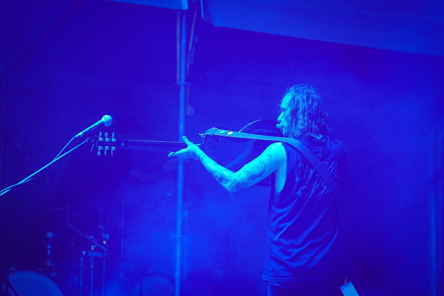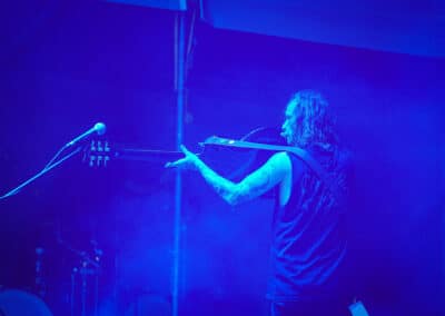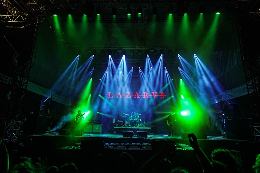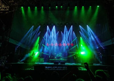 Itt pedig már a Lazarvs beállásának lehettem tanúja, ugyanis ők voltak az este utolsó fellépői ezen a helyszínen. Már a beállás is irdatlanul hangos volt, úgyhogy itt elkönyveltem, hogy akkor bizony ebből is vagy leghátsó sor lesz, vagy hangfalakon kívülre állás. Végül az utóbbira esett a választásom egy-két perces sorok között járkálást követően. A trió előadása és játéka kiváló volt, viszont a dalaik ennél jobb megszólalást érdemeltek volna. Valamiért itt is a torz, túlzottan hangos basszus, és ez által a többi hangszer elnyomottsága volt a jellemző (ezúttal ezt többen is megjegyeztük a koncertjük alatt). Nem tudom, minek volt köszönhető aznap ez a több előadónál is fellépő jelenség. Mindemellett a Lazarvs színpadképe szokásosan izgalmas és ördögi volt, a zenéjük hangulata rabul ejtett.