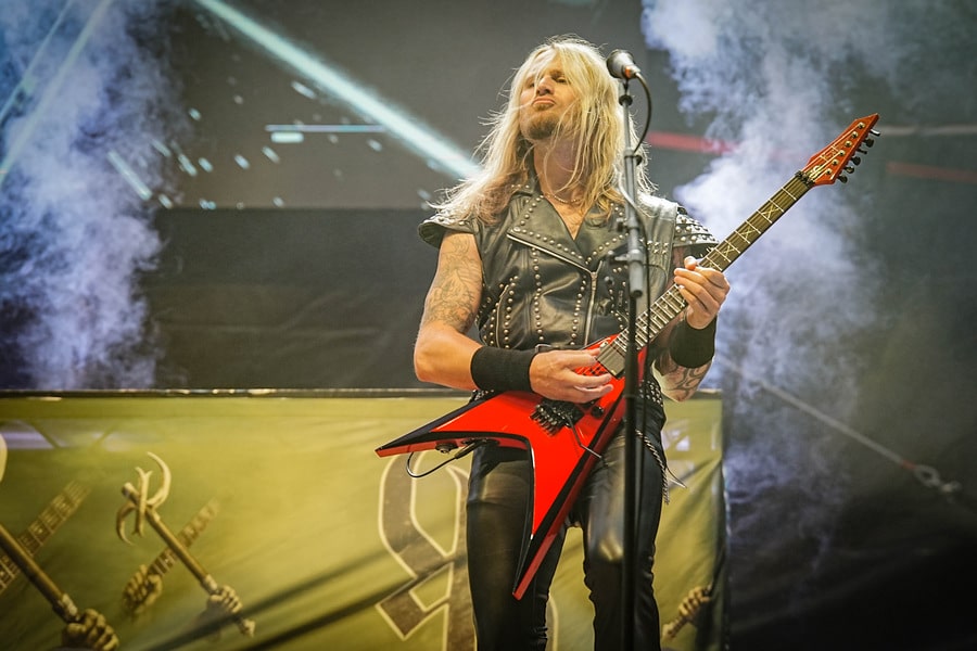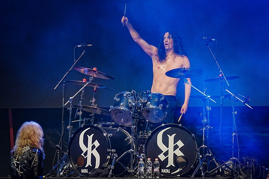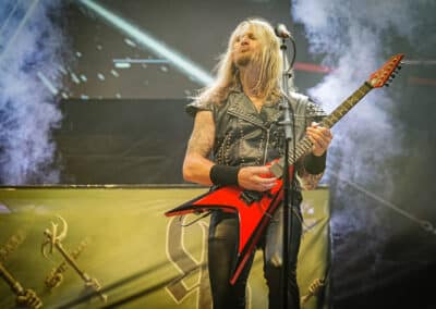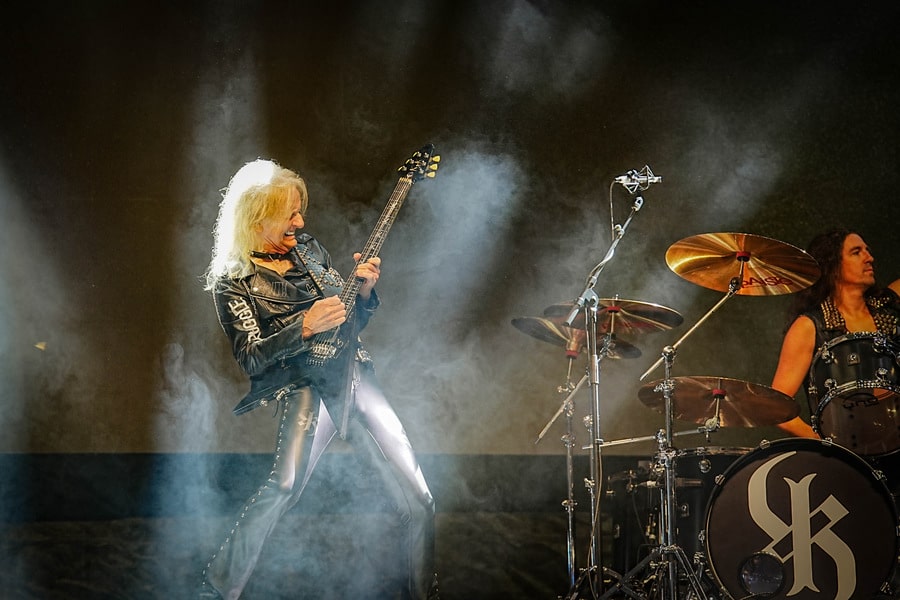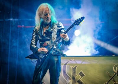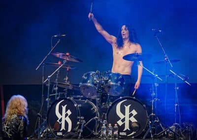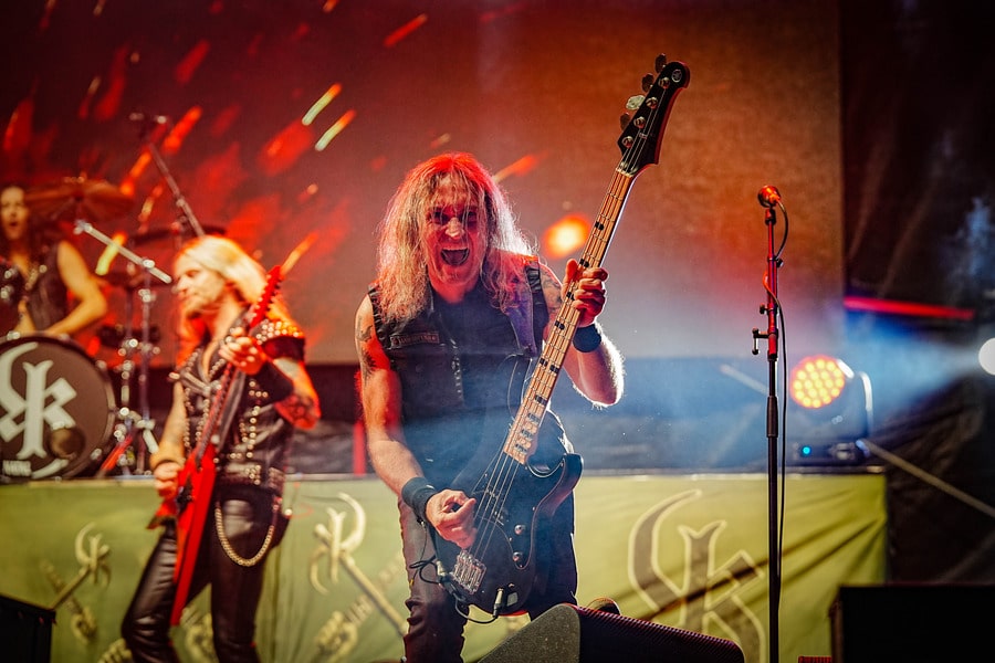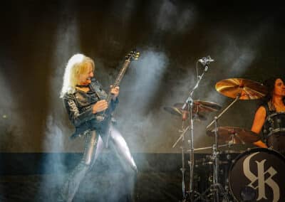 Mi a szombati napon a budapesti Frog Leap koncertje miatt (melyről nemsoká szintén érkezik a fényképes beszámolónk) csak az angol heavy metal KK’s Priest fellépésére értünk oda. Nem tudtam, mire számítsak, ugyanis nem hallgatom őket, és soha semmit nem is hallottam még tőlük. Meg kell mondanom, hogy már az intróval sikerült teljesen magukkal ragadniuk. Mintha egy videójátékba csöppentünk volna, a bejátszott kis videó tökéletesen felvezette a koncertjüket és megalapozta a klasszikus heavy metal hangulatot. A felállás legtöbb tagja már nem éppen mai darab, mégis olyan erővel és energiával álltak a színpadon és hozták le a szettet, mintha húszévesek lennének. A hangzás szerencsére ezúttal fantasztikus volt, ez is hozzájárult ahhoz, hogy élvezzem a műsorukat. A dalokban szintén sok érdekességet fedeztem fel: ötletes témák, groove-os riffek, tüzes ikerszólók. A díszlet és a pirotechnika sem hagyta lankadni a figyelmünket egy pillanatra sem (a tűzijátékba, amivel egyből bekezdtek, nekem és kollégámnak is sikerült direktbe’ belenéznünk, és szerintem rajtunk kívül is voltak, akik nem számítottak rá…). Örülök, hogy ismét sikerült jó élménnyel távoznom egy olyan koncertről, ami felé külső behatás nélkül sosem nyitottam volna.