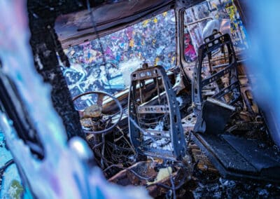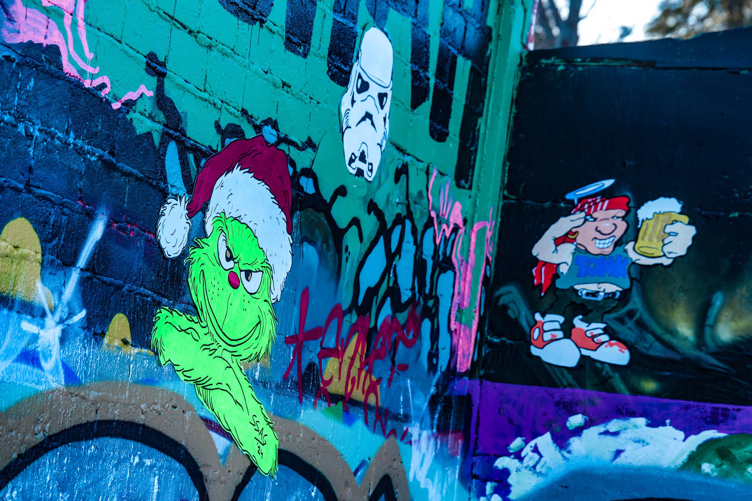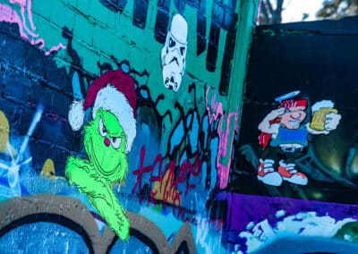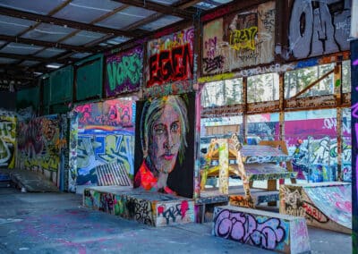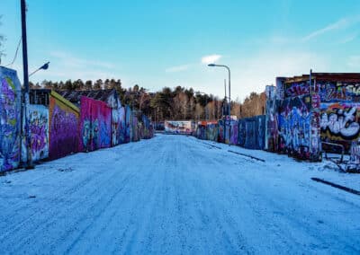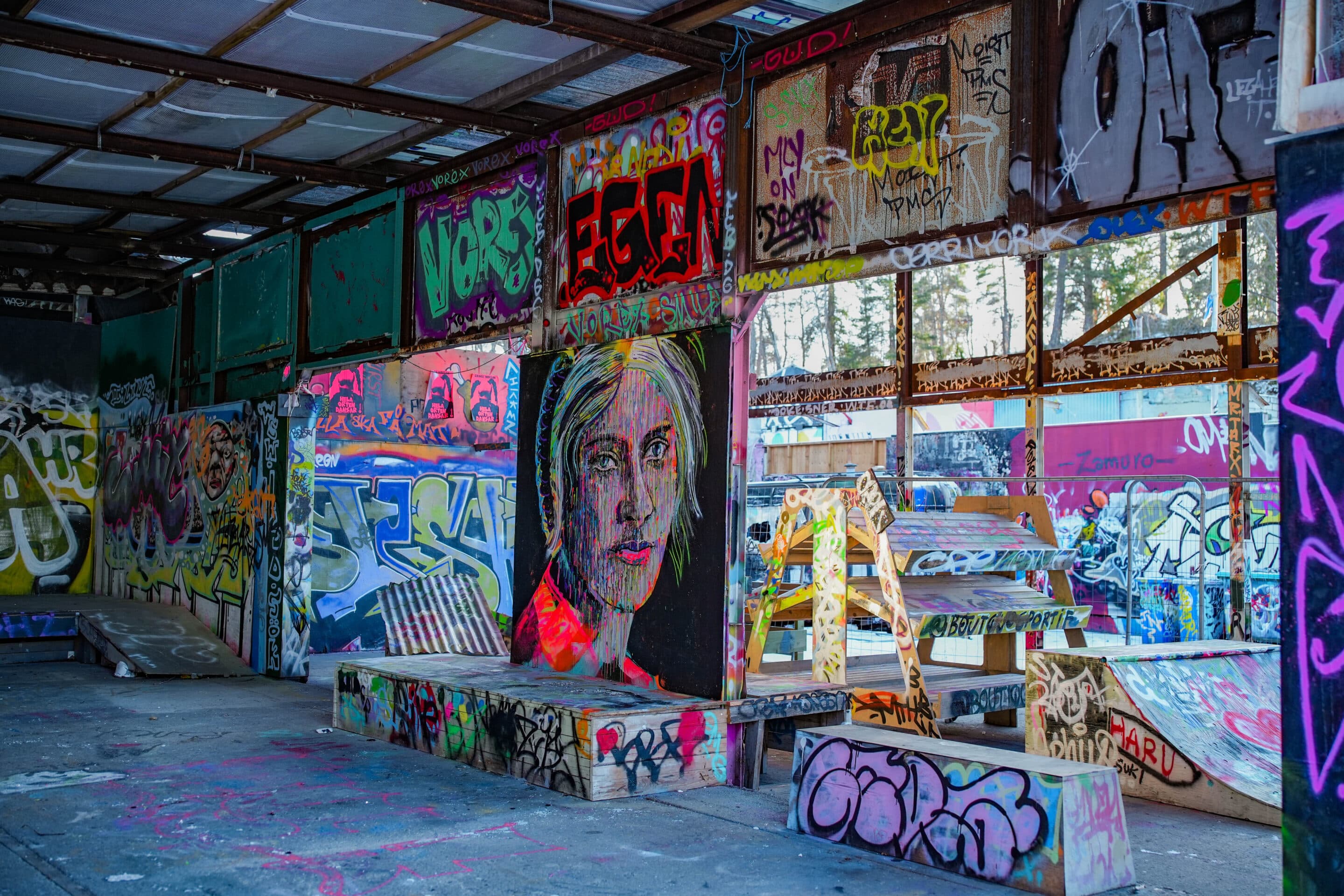 Találtunk egy nagy gyártelepnek kinéző placcot, ami igazából csak rengeteg falból állt, volt egy lepukkant színpad és pár pad meg leírhatatlan kellék és berendezés, nagyjából a Budapest Park egykor használatban lévő svéd kistestvérének tudtuk elképzelni. Ma már teljes egészében graffitik borítják, amik közül a legtöbb fantasztikus, művészi. Persze sokra rávandálkodtak sajnos, megszámlálhatatlan fallikus ábrával is találkozik az odalátogató.