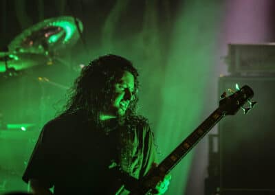 Az estét az ugyancsak USÁ-ból érkezett Cattle Decapitation zárta, aki az egyik legundorítóbb (értsd jól) zenekar volt az est folyamán. A deathgrind/grindcore banda is halálpontosan szögelt és irtó technikásan játszott. Josh Elmore fura alakú gitárjához hasonlót még nem is láttam. Olyan szintű lábdobtempó ment, hogy valami elképzelhetetlen számomra, hogy ember képes ilyenre. David McGraw bizonyára doppingol vagy transzcendens erőket hív segítségül, ilyen lábmunka nem lehetséges természetes úton. Travis Ryan énekes rendesen csinálta a show-t, oroszosan fújta a színpadon az orrát, majd egyszer egy olyan mutatványt is végrehajtott, hogy köpött egyet, és a levegőben elkapta a terméket. (Csak a szokásos! – főszerk.) Khm, elismerésre méltó.