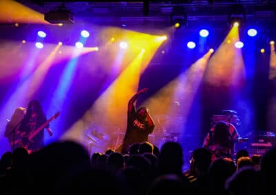 A színpadi világítás mind a négy bandánál teljesen alap volt, nem hoztak magukkal saját lámpákat, sem díszletet. A fényessrác megőrült a pult mögött, akárhányszor ránéztünk, szinte össze-vissza tologatta a fadereket eszelős tempóban, majdnem elrepült. A legtöbb emberen volt füldugó, amit jó volt látni. Valamint nagyon kevés telefon volt a levegőben.