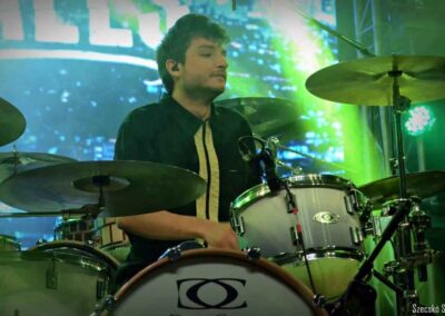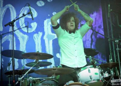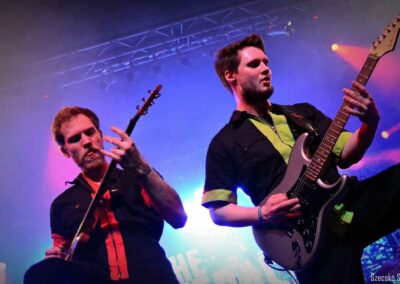 Czifra Miki és Vermes Andris nagyon technikásak, bátran és ösztönből játszák a darálások mellett a szívhez szóló gitármeneteket és szólókat is. Legalábbis látványra így tűnt, ugyanakkor a villanygitárok hangja sajnos nem volt az igazi, egy erős közép tartomány, hangtónus szólalt meg, ami hátrány volt a szólóknál, mert hallani alig lehetett őket. Azt persze hozzá kell tenni, hogy az előzenekarok játékában fele annyi szóló sem volt, mint a Kills koncertje alatt, és egy ilyen dallamosabb műfajnál ez kritikus pont lehet. Nem volt borzasztó, de lehetett volna jobb is. A másik oldalról, a mély, lüktető rifftémák sem voltak érzékelhetők annyira átütőnek, talán a basszusgitár hangszíne is lehetett volna egy kicsit vastagabb. Ezzel szemben a dobok hibátlanúl szóltak és a dobos, Jankai Valentin még mindig a leginkább kiemelendő. Nagyon dinamikusan, jól felépített dobtémák, ötletes és kreatív fillek, de nem túlzásba esve, pont annyi amennyi kell. Profizmusés szenvedély, nagyon szimpatikusnak ható emberek a tagok, akiken látszik, hogy a zene az életük. A társak is, de Leander főleg ilyen ember, aki a zenének, a zenében él. Viszont pont emiatt úgy tűnik, hogy talán nehezebben is fogja fel, hogy mi történik körülötte, hogy mennyi ember rajong őérte. Viszont a nyíregyházi koncertjükkel összehasonlítva (amiről itt olvashattok), most talán jobban figyelt a közönséggel való kommunikációra, az üresjáratok leredukálásra. Fura de ez utóbbiak hiánya miatt talán rövidnek is tűnt a koncertjük…