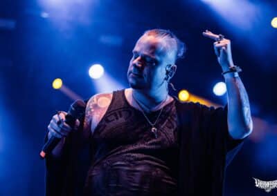 A Sear Bliss és a Thy Catafalque közötti rövidke szünetben észleltem, hogy a létszám drasztikus növekedésnek indult: a Sear Bliss alatt harmad házzal muzsikáló Barba nagyjából 60-70 százalékosra telt fel; tömegek cigiztek és dumáltak az udvaron, és az embernek tényleg olyan érzése támadt, mint komolyabb nemzetközi fellépők koncertje vagy akár fesztiválok során. Gondolom, Vozi most kivételesen kihagyta a bemelegítést, és máris kezdett a Thy Catafalque.