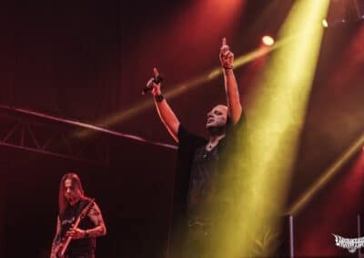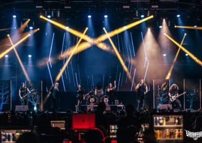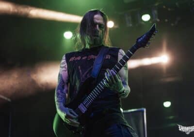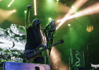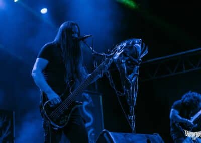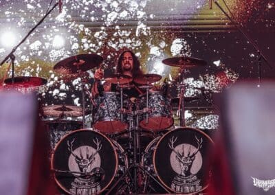 A kezdetek óta eltelt majdnem négy év és sok tucatnyi – időnként turnéval vegyített – fellépés meghozta a maga gyümölcsét: egy teljesen profi, összeszokott gépezetet láthattunk. Mindez természetesen a fellépés légkörére is rányomta bélyegét: jól láthatóan volt erő és lehetőség például a vizuállal és a koreográfiával foglalkozni, és a rutin lehetővé tette, hogy az énekesek-zenészek minél inkább a zenében rejlő energia átadására tudjanak koncentrálni. Meg is hozta ez a maga eredményét; szerintem elsöprő sikere volt a Thy Catafalque fellépésének. Szerencsére ezen események koreográfiája nem statikus, és az este gerincét adó elemek mellett mindig van valami pici színes vagy apró csavar, amit egyfajta ajándékként kap a hallgatóság. Eddig is hallatszott – most viszont határozottan előtérbe került – a női hörgés megjelenése: ezt a teljesen egyedi hangszínt Ivettnek köszönhettük, és azt kell hogy mondjam, tökéletesen passzolt az általa énekelt dalok stílusához és hangulatához. Szerintem nem volt még olyan magyarországi fellépés, ahol ne halhattunk volna valami új tételt, és ez ebben az esetben is megvolt (Aláhullás), így az ismerős dalok megnyugtató akolmelege mellett az újdonság ereje sem maradt ki – azaz összefoglalva: mostanra vastagon beérett egy tucatnyi ember több éves munkájának gyümölcse. Innentől, gondolom, már „”””csak”””” működtetni kell ezt a gépezetet, és nem tartok attól, hogy ez nehézségeket okozna, hiszen nemcsak profi, hanem elképesztően kreatív is ez a társaság: teljesen biztos vagyok benne, hogy minden egyes élő fellépésükön lesz a jövőben is valami olyasmi, amire csorgó nyállal, jóízűen csettint kedve gondolunk vissza.