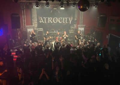 18:30-kor kezdtünk és ugyanaz volt a helyzet, mint Glauchauban, itt is rengeteg ember volt már a kapunyitás pillanatában, amikor felmentünk a színpadra, örömmel láttuk hogy közel teltház van az 500 férőhelyes klubban! Folytatódott az előtte nap, annyi különbséggel, hogy az itteni közönség még jobban vevő volt arra a mondatomra, hogy I wanna see some pit ladies and gentlemens! Óriási energia áradt a nézőtérről fel hozzánk a színpadra, ami rajtunk is egy hatalmasat dobott! A koncert utáni vigyorgás természetesen itt sem maradhatott el! Lepakoltuk a színpadot, majd egy kicsit segédkeztünk az utánunk következő Atrocitynek! Kicsi aggodalom viszont volt bennünk, hiszen Anglia következett, ahova a Brexit óta köztudottan nehéz bejutni, és ne legyünk álszentek, nem vagyunk valami bizalom gerjesztő pofák 😀 ! Németországot összegezve, egy nagyon jó közönség volt mindenhol, a klubok rendkívül profik voltak minden helyszínen, a catering, a backstage, a segítő emberek és még sorolhatnám a végtelenségig! Örökre a szívünkbe zártuk őket és nagyon remélem, hogy ezzel a német hallgatóság is hasonlóan van, a koncert kritikáin egytől egyig nagyon jók voltak, aminek brutál örülünk! Visszatérünk még ide!