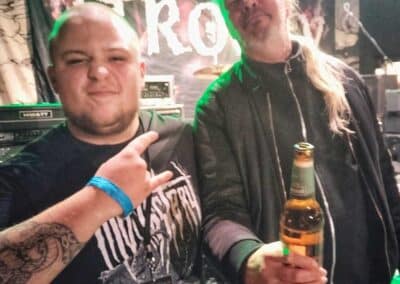 Ezt a bulit iszonyatosan vártuk, nem csak azért, mert ez egy „mini” fesztivál volt, hanem azért is mert ezen az estén csatlakozott hozzánk az Asphyx is. Szerintem őket senkinek nem kellett bemutatni, aki kedveli a death metal műfajt! A klubhoz érkezve várnunk kellett egy kicsit a nightlinerre, de nem a késés miatt, hanem mi érkeztünk jóval korábban. A szokásos bepakolás következett! A Belphegor színpadjának a kialakítása alatt, bedobtunk az arcba fejenként egy liter kávét, majd vártunk. Ültem az asztalnál, majd egy ismerős arcot pillantottam meg, Martint az Asphyx zenekarból!! Felpattantam és azonnal kértem tőle egy fényképet, itt megjegyezném, hogy egy végtelen színpatikus ember, rendkívül közvetlen volt velem, váltottunk is pár szót! Kérdezett a zenekarról, milyen műfajt tolunk. Elmondtam neki amit tudni kell rólunk, majd annyit mondott erre hogy kíváncsian várja a koncertünket! Azt a rohadt életbe, gondoltam magamba, elmondtam a többieknek is, mindenki azon a véleményen volt hogy itt ma 110%-ot kell nyújtanunk! A lehetőságek adottak voltak, fenomenális volt a színpad, a soundcheck alapján jól is szóltunk, a fénytechnika is profi volt. A terem egyébként itt is 800 férős volt! 18:00-kor volt kapunyitás, ekkorra már végeztünk mi is a beállásunkkal, mondom kinézek mi a helyzet a kapunál! Azt a kurva életbe! Kígyózó sorok voltak már este 6 órakor az ajtó elött, ez még nagyobb lendületet adott nekünk! 1 óra várakozás vette kezdetét, ami gitár hangolással és az öreg derekam, nyakam bemelegítésével telt el. 😀 19:00 kezdés, már szólt az intro amikor kimentünk a színpadra és döbbenetes módon, teltház volt! Mindenkit egy baszott jó érzés kezdett el magába keríteni a zenekarból! Túl vagyunk pár koncertet, hiszen szerintem jópáran tudjátok, hogy mennyit koncerteztünk az elmúlt években, de ez valami egészen más volt. Ennyi embernek játszani egy olyan érzés, amit nem igazán lehet szavakba önteni és tiszta szívemből kívánom minden zenész honfi sorstársamnak, hogy élje át ezt a dolgot legalább egyszer az életében! A közönség szuper volt, ment a bólogatás, a Dreadfull Thing alatt pedig egy kis pogó is belefért a színpad előtt! A balkonon már koncert közben láttam hogy Jules a basszeros (Belphegor, Nile, Incantation) végig nézte a koncertünket, csak úgy mint az Atrocitys srácok és az Arkona zenekar is, ráadásul Masha rengeteget le is kamerázott a koncertünkből! Amikor mentünk le a színpadról, közülük a legtöbben megveregették a vállunkat és mondták hogy nagyon tetszett nekik a koncertünk! Vigyorogtunk mint az állat megdumáltuk a dolgokat, majd irány zuhanyozni és kajálni. Mindenki végzett a kis teendőjével, majd ezután jött az ami az eddigi zenei karrierem legnagyobb elismerése volt. Martin behívott minket az öltözőjükbe, ahol elmondta hogy brutálisan jó show volt amit aznap este lenyomtunk és nagyon tetszett nekik, reméli találkozunk még, lepacsiztunk! Ez egy kibaszott tündérmese, gondoltam magamba! Nem is volt kérdés hogy ma a 3 zenekar mellett az Aphyxot is megnézzük, amire akkorát bólogattam hogy majd leesett a fejem! Óriásit toltak a veteránok! Közben Alex az Atrocityből csinált velünk képet, külön kihangsúlyozta hogy mekkora király hogy a faterommal zenélek! Összegezve ez olyan este volt számunkra, amit azt akartuk hogy soha ne érjen véget, de menni kellett tovább, hiszen másnap Essen következett egy legendás klubban! Életem végéig felejthetetlen élmény marad ez az este!